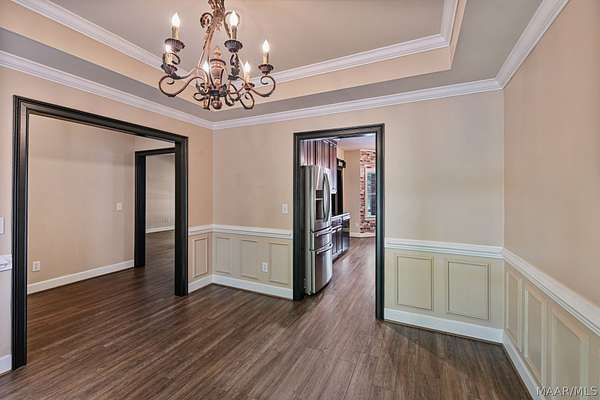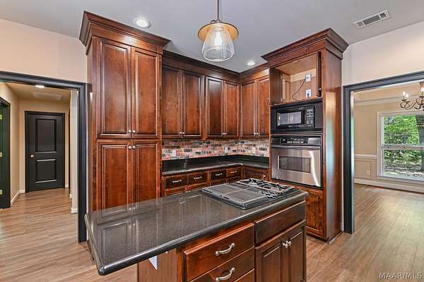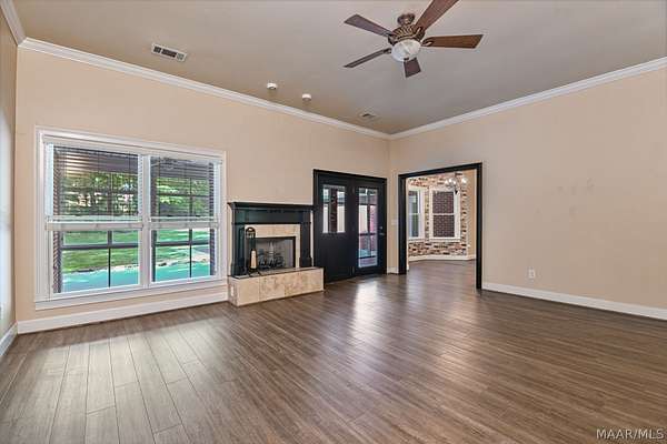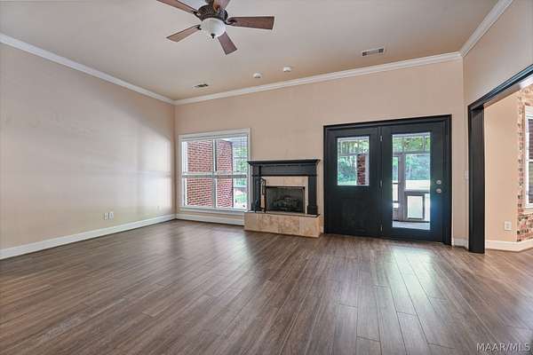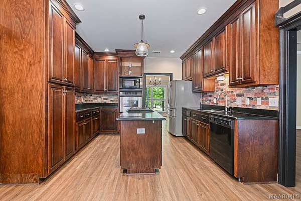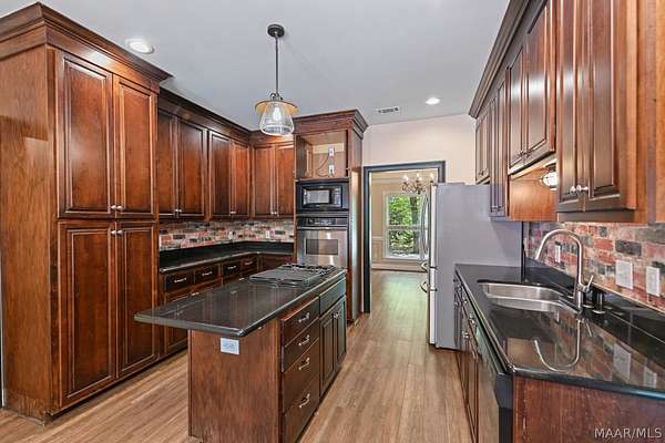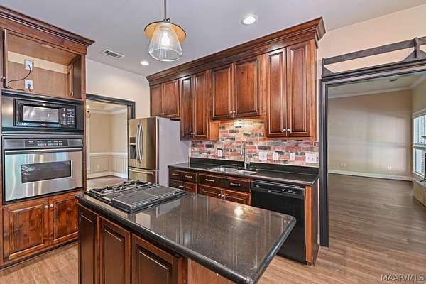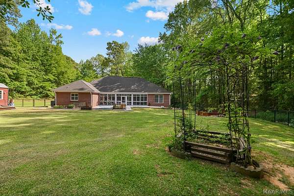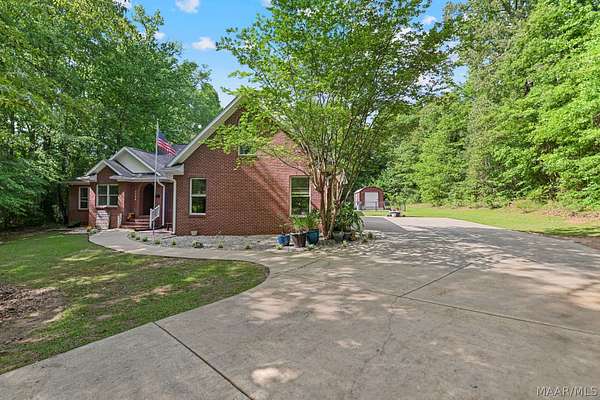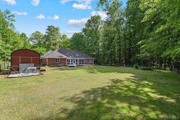 Welcome Home! This beautiful home has 4 bedrooms, 2.5 bathrooms, and a large bonus room upstairs. This home has so much charm and you see it as soon as you walk up to the front porch. Front porch has a beautiful brick archway and solid wooden door. As you walk into foyer the formal dining is to your right. You walk into a large family room with hard wood floors and a fireplace. The kitchen has lots of cabinets and a pantry that provides lots of storage. The kitchen has black granite counters and dark cabinets. The kitchen has an island in middle with a cook top area. The kitchen has a stainless-steel refrigerator, dishwasher, built in oven, and a microwave. The main bedroom is large with tray ceilings. The main bedroom also has a door to access the enclosed patio. The main bathroom has his/her sinks, a jetted garden tub, a walk-in tile shower, and his/her closets. There are three other large bedrooms on the main floor, along with a guest bathroom, and half bath. All the doors are painted black which add to the charm of this home. There is a large bonus room upstairs that would be perfect for a media room or a game room. The home has a two-car garage with a extra storage room. This home sits on 1.88 acres. The back yard is fully fenced in. The back porch is enclosed and provides lots of space for entertaining friends and family. The property has a shed with roll up door on side. There are several little flower gardens in the back yard. The main HVAC system was replaced 2019. New water heater was installed 2021.New gutters were installed 2023. A home surge protector was installed 2024.The second HVAC system was replaced in 2025. This property is 6 miles to Auburn University.