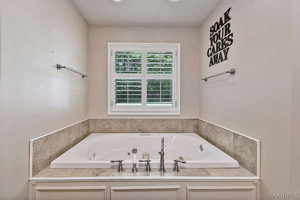 - Attic, Double Vanity, High Ceilings, Jetted Tub, Kitchen Island, Programmable Thermostat, Separate Shower, Split Bedrooms, Tray Ceilings, Walk In Closets, Window Treatments