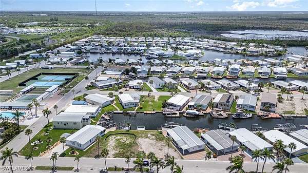 Seller Financing. Build to Suit! A competitively priced opportunity to build your dream tropical oasis in Bayside Estates, a vibrant 55+ boating community just 2.5 miles from the white sands of Fort Myers Beach. This prime lot is perfectly situated just steps from the clubhouse and pool, offering effortless access to relaxation and a variety of social activities. The property's dock, which survived Hurricane Ian, provides direct Gulf access for endless boating adventures. Residents enjoy a low-maintenance lifestyle with a low HOA fee that includes lawn care, water, sewer, internet, reclaimed irrigation, and onsite management. With a full calendar of planned community events, Bayside Estates fosters a strong sense of connection and camaraderie among neighbors. Surrounded by lush tropical landscaping and welcoming residents, this is your chance to create a luxurious retreat in a peaceful, amenity-rich setting. Don't miss the opportunity to bring your vision to life in one of Southwest Florida's most desirable coastal communities.