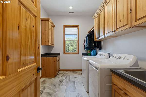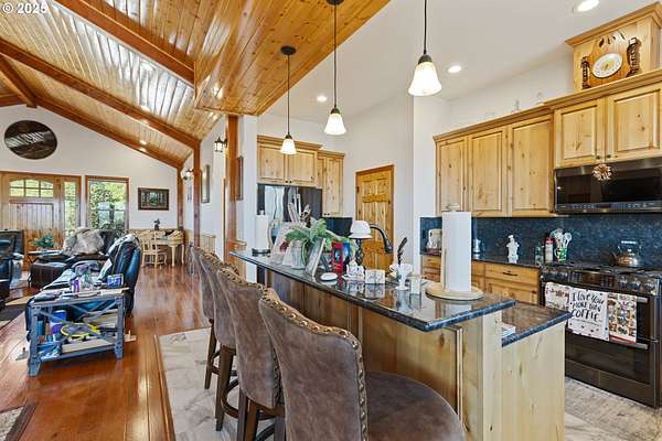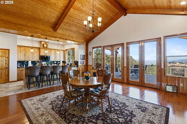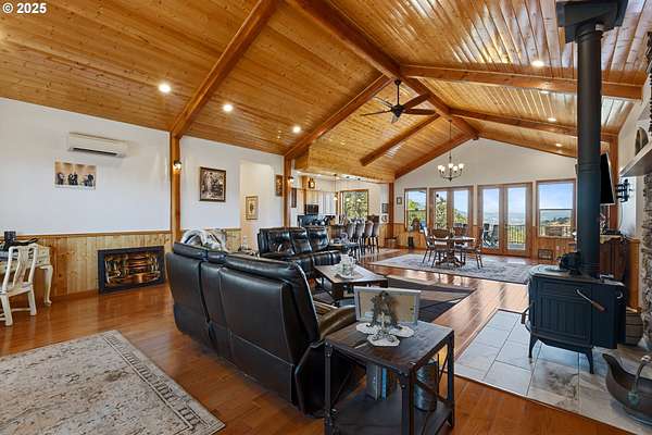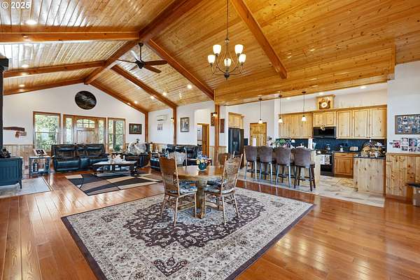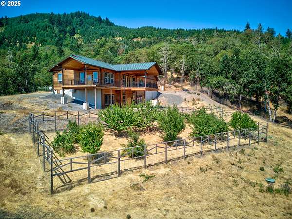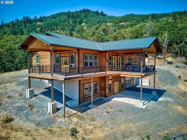 Don't miss this rare opportunity to own a one-of-a-kind 3,956 sq ft custom cedar home situated on 42.48 private acres. This beautifully designed 2-bedroom, 3-bathroom home features granite countertops, soaring ceilings, and an open-concept floor plan with split living quarters. Natural light fills the home, and multiple decks provide panoramic views of the orchard, mountains, and surrounding valley. The lower level offers flexible space that could be converted into an additional bedrooms and a family room. Enjoy breathtaking scenery from the large deck off the dining area and primary suite. Additional features include: 9x9 built-in safe in the basement, Walk-in cooler in the attached 1,440 sq ft garage, Multiple view decks around the home, Abundant wildlife and serene surroundings. The property also includes a 60x80 shop, zoned light industrial, with a half bath, engineered for a crane. Potential for subdivision-buyers to verify with the City of Riddle.