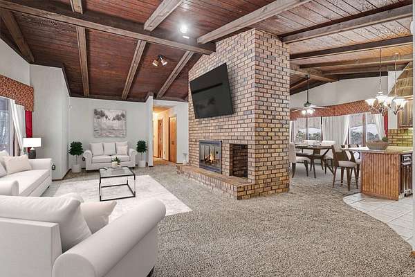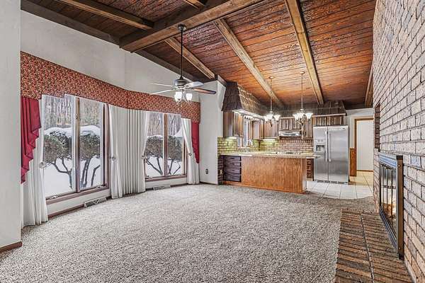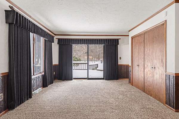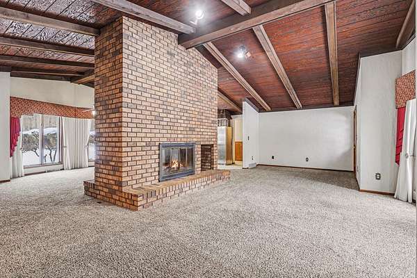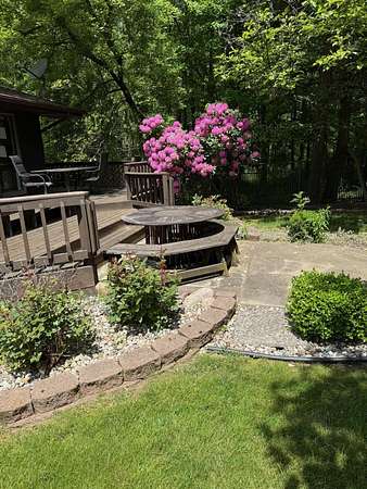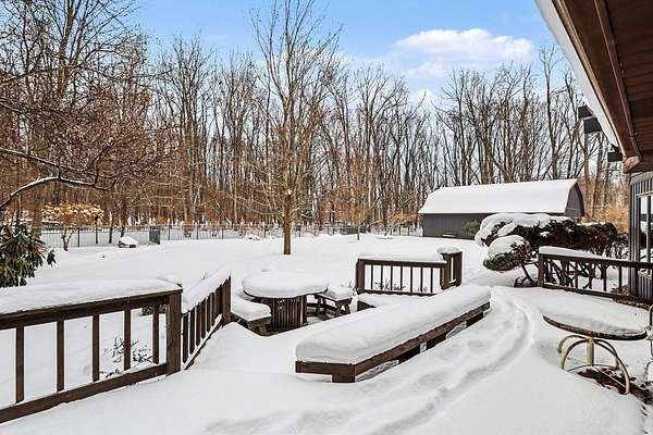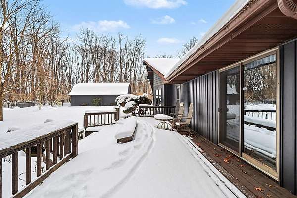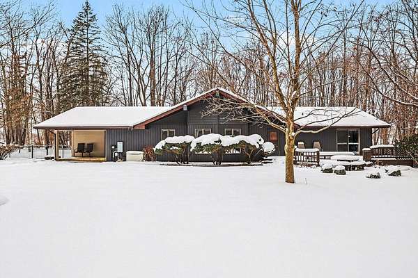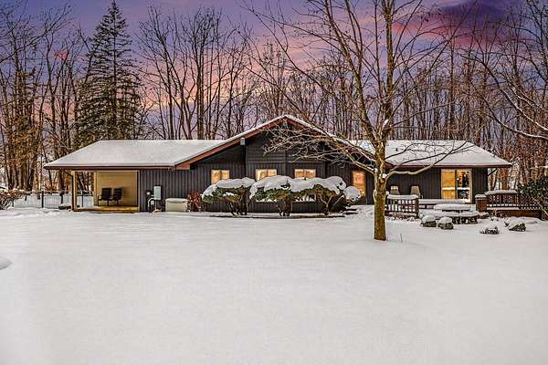 Experience the perfect blend of rustic charm and everyday comfort in this 3 bedroom, 2.5 bath ranch nestled on 10.1 private wooded acres with a 2-story 30'x40' gable roofed pole barn w/electricity! Inside this 1740 sq. ft. home you'll find beamed cathedral ceilings & a stunning double-sided wood burning brick fireplace creating an inviting focal point between the ''great room'' and the dining room w/its large bay window overlooking the landscaped backyard. The kitchen w/granite counters opens to both areas. The primary ensuite features an updated bathroom & sliders to a cozy deck. The finished walkout basement expands your living space with a ''rec'' room with a wet bar, half bath, office/hobby room & generous storage. Amenities include: Main floor laundry, 2-car attached garage, generator, covered patio, wrought-iron fencing & a private paved driveway. Asking $450,000.