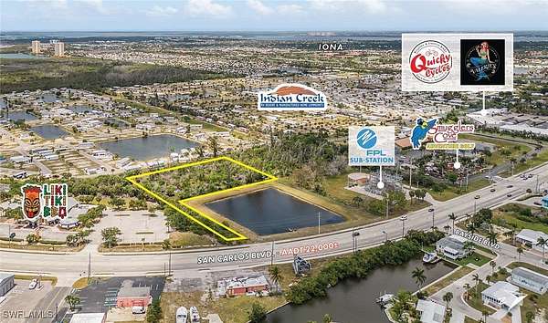 Presenting 17570 San Carlos Blvd., a 2.30+/- acre parcel located in Fort Myers Beach. This site features direct access from San Carlos Boulevard, the highly trafficked thoroughfare that connects Lee County to Fort Myers Beach. The property is currently zoned CPD, with the present permitted use allowing for a parking lot with 122 spaces. The commercial corridor in which the property sits is developed with a variety of C-2 uses, making the site a prime candidate for a rezone to C-2 or a new CPD. The property also falls within the Urban Community future land use category, which are areas characterized by a mixture of relatively intense commercial and residential uses, allowing for a multitude of development ventures. As Fort Myers Beach reemerges with development, this property presents an opportunity to capitalize on the rising demand in the Fort Myers Beach area. PROPERTY HIGHLIGHTS: - 2.30+/- acres of premier land with frontage on San Carlos Boulevard. - Conveniently located only 2.5 miles away from the white sand beaches of Fort Myers Beach. - Within a 15-minute drive of Sanibel, Cape Coral, and the City of Fort Myers. - Great investment potential for future commercial growth. - One of the last remaining large tracts of undeveloped land in the corridor. - Urban Community future land use allows for density ranging from 1 Du/Acre to 6 Du/Acre, with a maximum of ten dwelling units per acre. - Positioned in a high-growth corridor and surrounded by amenities, attractions, and outdoor recreational activities. - Excellent opportunity for rezoning to accommodate a variety of commercial ventures.
