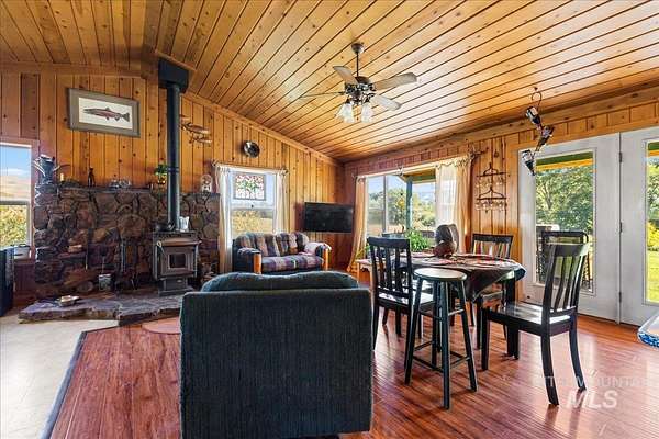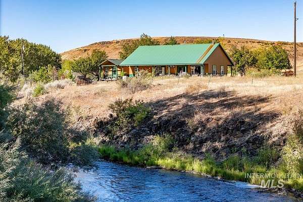 Incredible, private location with approx. 1500 feet of Weiser River frontage. The house rests just above the river and is surrounded by dry land pasture with unprecedented river frontage and privacy! Built in 2004, the 1400 sq. ft. home boasts 3 bedrooms, 2 bathrooms, an attached 2 car garage, covered patio overlooking the river, barn, and storage sheds. The main living, dining, and kitchen area has a vaulted tongue and groove ceiling, large peninsula in the kitchen, stainless steel appliances, and rock hearth wood stove as a secondary heat source in the winter. Newer furnace and fresh exterior paint. Outside there is a separate small dry cabin, perfect for guests or as a hobby room. The garden space fenced with fruit trees. Wildlife is everywhere! The Weiser River is known for its great fishing. If your dream is to live in a private oasis on one of the prettiest stretches of River in our area, this property will not disappoint!