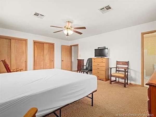 Do you need a large home and want acreages? This gorgeous brick exterior home is located East of Nowata on a hill about 3 miles from the best fishing in the county and sets on 4.66 acres! When you enter this 4 bedrooms, 2.5 bathroom home the first thing you will notice is the size of the rooms, closets, storage and space! The living area has lots of windows and space for all the furniture you could possibly want and the shelf space is waiting for your decor! After walking through living area. The kitchen and dining area is a very open Kitchen floor plan. The dining is same as the living area is generous in size and has custom built storage as well. Nice slab patio that is set up for those summer nights to have company and a cookout! The laundry room has two closets for storage and also has an exit in it. One bedroom is on one end of the home for those that want privacy with a hall half bathroom and on the other end of the home is the other three bedrooms .The master bedroom has room for a king size bedroom set and nice closet space and that is not all there is a private bath. Come enjoy the land, the fenced in backyard, the backyard patio ,garage and don't forget there is a boat ramp only approx 4 miles away! This house needs a little updating on the inside but it would be so worth it. Call soon and see this beauty