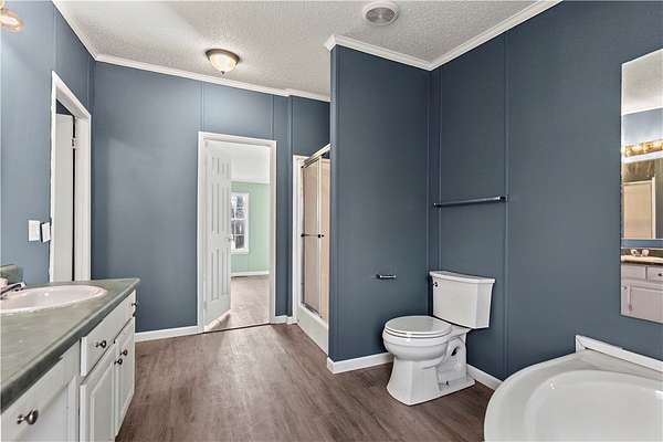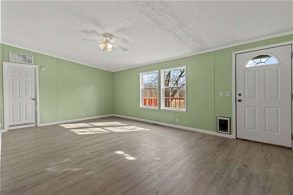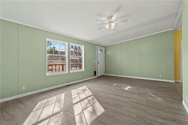 Spacious 4BR/2BA manufactured home with approximately 2,100 sq. ft. situated on 2.25 acres. Features include a large primary suite with walk-in closet, open living areas, and two decks ideal for entertaining or enjoying the outdoors. Outbuilding conveys for added storage or workshop potential. A great opportunity for space and privacy!