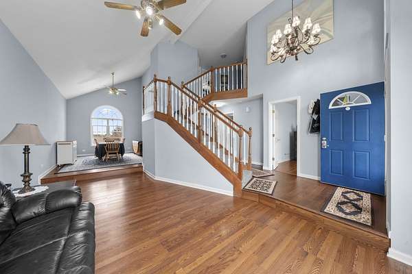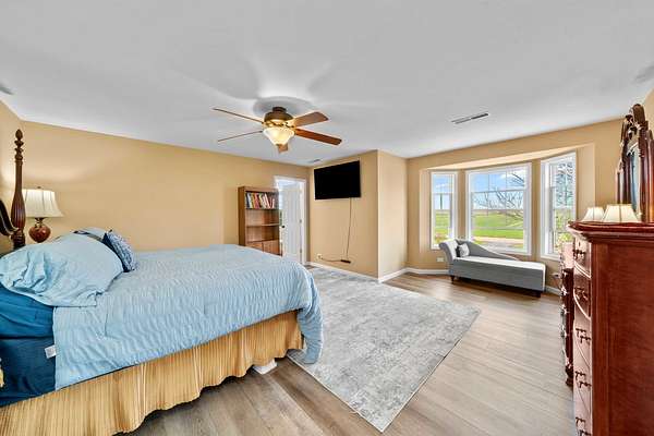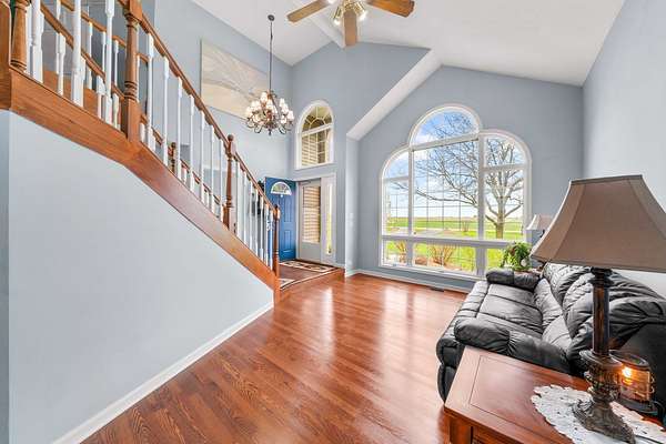 Welcome to this exceptional custom-built estate, offered for the first time by its original owner. Nestled on 5 private acres, this thoughtfully designed 3-bedroom, 3.5-bath home combines timeless craftsmanship with modern comfort. From the moment you arrive, you'll appreciate the attention to detail and quality construction throughout. The main floor offers a well-designed layout featuring a spacious living room, formal dining room, a well-appointed kitchen perfect for entertaining, a cozy family room with a gas fireplace, a dedicated home office, and a convenient half bath for guests. Large windows throughout the home bring in abundant natural light and showcase the surrounding landscape. Upstairs, you'll find two spacious bedrooms, a convenient half bath, and a luxurious primary suite. The primary suite features a whirlpool tub, a walk-in shower, and an expansive walk-in closet complete with its own washer and dryer for added convenience. The finished basement offers even more room to entertain, with a comfortable family room, a versatile rec room perfect for a playroom or hobby space, a full bathroom, and ample storage throughout. Enjoy year-round relaxation in the heated enclosed back porch-perfect for morning coffee, evening gatherings, or taking in peaceful views of the property in any season. Step outside to the expansive acreage, complete with a dedicated tool shed for storage or workspace needs. The grounds offer endless possibilities for outdoor living, recreation, gardening, or simply enjoying the serene setting. This one-of-a-kind home delivers privacy, space, and the pride of single ownership-all in a beautifully crafted custom build ready for its next chapter. Come take a look today! You won't be disappointed!