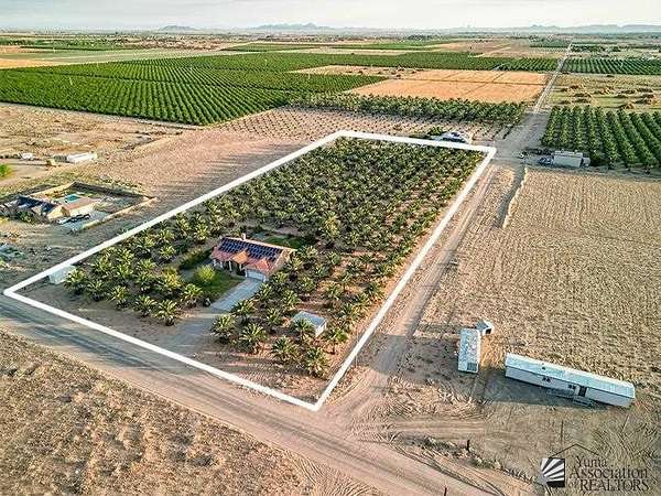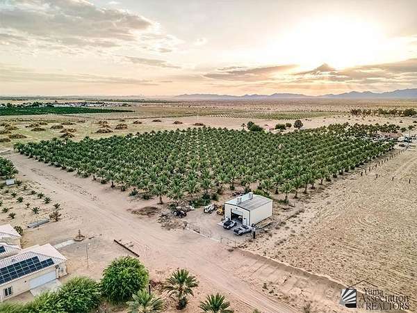 Est $14,322/moMedjool Dates for sale in Yuma County. Organic certification. 31.78 total acres. x5 separate parcels. Date trees planted 2013-2016. x3 wells. Unit A YMIDD for x10 acre parcel. Date parcel with residential property 1817 square feet 3br/2ba built in 2003. 1200sq ft Shop Space available on property on parcel 212-12-005. Paid solar energy available on property with house and over the pumps on the wells. Parcels may be sold separately or bundled together as single purchase. Great opportunity to invest in Yuma.