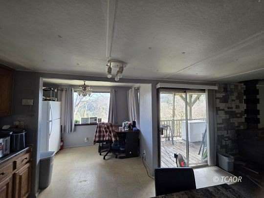 - Laminate/Formica Linoleum/Vinyl, Countertops Carpet, Flooring Wood Stove, Flooring