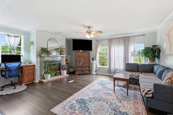 Tucked away on approximately 7 acres, this property offers the perfect blend of open space and wooded privacy, complete with a creek. A newer outbuilding provides additional space for storage, hobbies, or a workshop. Inside, you'll find 4 bedrooms, 2 baths, two living areas, a cozy fireplace and an open floorplan designed for comfortable living. The spacious primary suite includes an oversized closet and a large bath. Whether relaxing on the covered front porch or enjoying the peaceful surroundings, this home invites you to slow down and take it all in. Agents please read information in remarks!!