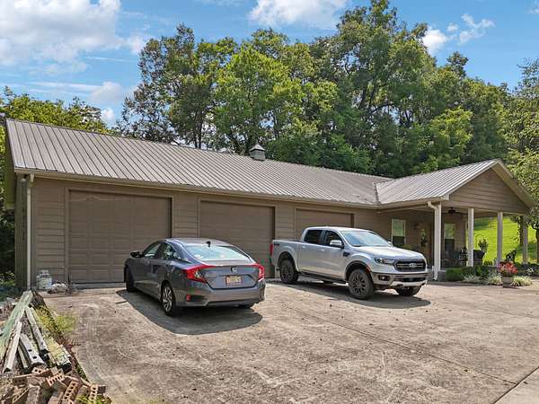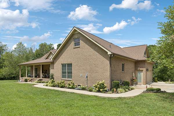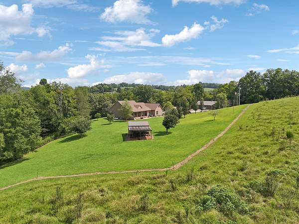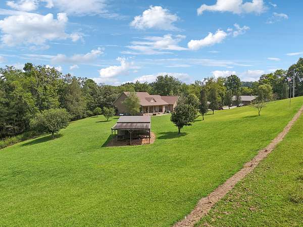 Welcome to your country paradise! Beautiful 18 acre property complete with a natural spring and a pond and 2,800+ sf gorgeous brick 3 bdrm, 2.5 bath home w/Bonus/Rec room on 2nd level, as well as walk-in attic storage or expansion area! This home built in 2014 has covered front & back porches (8x38 & 8x40) to watch the wildlife and enjoy the peaceful serenity, attached 2-car garage & detached 24x26 carport on concrete pad. There is also a detached building that houses a 600+ sf apartment/guest house, built in 2007, with covered front patio, kitchen (Stove & Refrigerator remain), full bath & combo living/dining/bedroom area attached to a 3-car garage/shop w/concrete pad, cabinets, electricity & water! You wind your way from the entrance with an open gate, up the wooded hillside to the property at the top of hill! The main home is mostly on one level with large Owner Suite, spacious open Kitchen/Dining/Eat-In & Living Room w/stacked rock propane fireplace and beautiful finished wood flooring! Kitchen has granite counters, walk-in pantry, counter bar and all Kitchen appliances remain (GE Stove, Dishwasher, Microwave & Refrigerator). An outbuilding with lean-to also remains. This home is a wonderful oasis with woods, acreage, pond, natural spring and privacy! All offers to be on TAR forms.