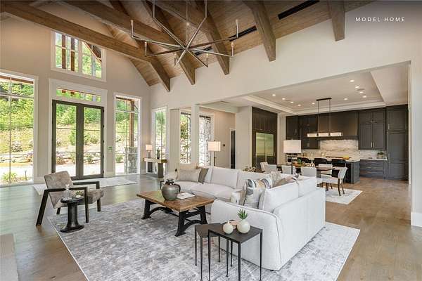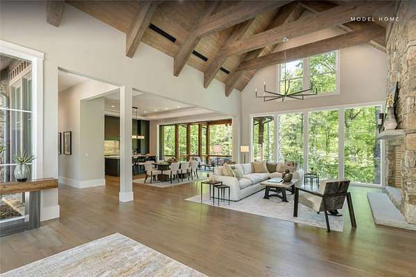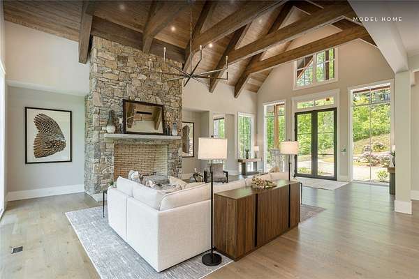 Stunning views and exquisite craftsmanship are just a few elements of this custom pre-build Loudermilk Home that elevate the Plateau lifestyle. Situated on over 22 acres in the serene Cedar Hill neighborhood, nature is at the doorstep, with floor-to-ceiling windows framing exceptional long- and short-range views of the Blue Ridge Mountains and their exposed rock face. Cedar and stone accents give this modern rustic home a warm and inviting facade, while dormers and angled rooflines create a distinctive architectural style. The floor plan is both spacious and open, allowing uninterrupted enjoyment of the main living space, which hosts an oversized stone fireplace ideal for warming up on chilly evenings. The gourmet Chef's kitchen features an island and dining room that provide a perfect setting for enjoying meals and entertaining. Full-height sliding glass pocket doors open to one of the home's covered patios, where an outdoor fireplace offers a cozy vantage point for the views. With four total bedrooms, a bonus room, five bathrooms, and two half bathrooms, the home offers ample space for gathering in comfort or enjoying peaceful solitude. The owner's suite connects to a private patio and features a fireplace and spa-inspired bathroom with a dual walk-in shower, soaking tub, and a generous walk-in closet. Additional features include a walk-in pantry, a sizable second living/recreation room, an office, and an attached two-car garage with attic storage. From the thoughtful integration of smart home technology to the carefully appointed fixtures and finishes, this luxury retreat showcases award-winning builder Loudermilk Homes' exceptional design and artisanship. Located just a short drive from the shopping and dining of charming Cashiers, this home offers the perfect blend of refined living and mountain tranquility. To showcase the property's potential, photos of a model home built by Loudermilk with the same floor plan are featured.