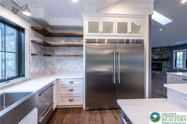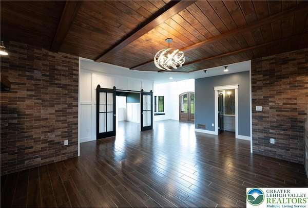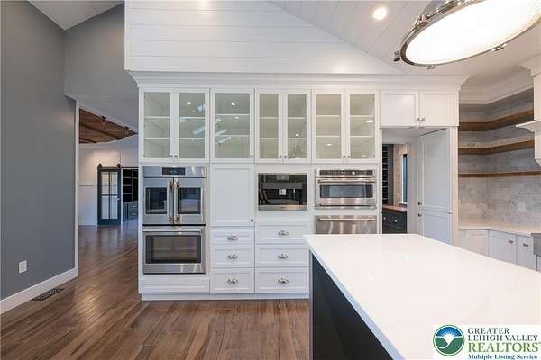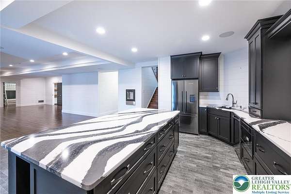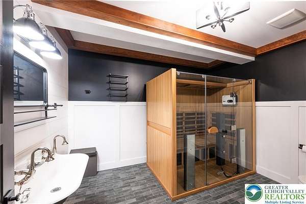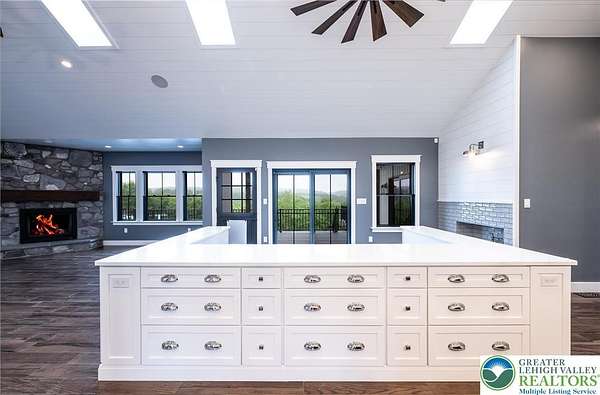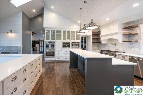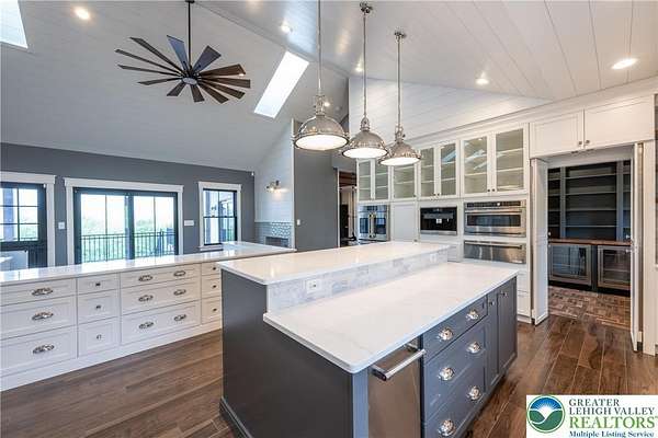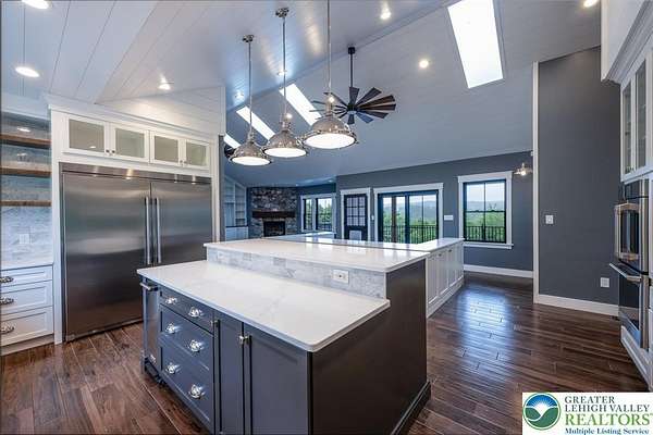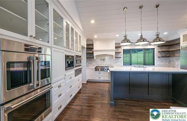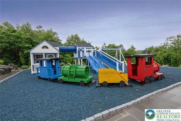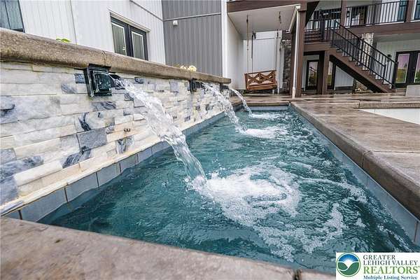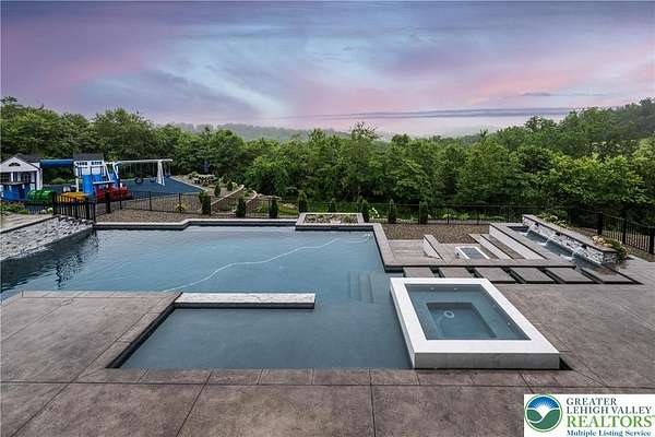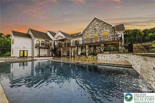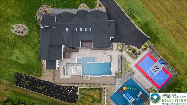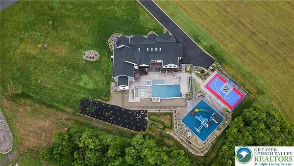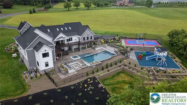 Experience unparalleled luxury in this custom-built Contemporary estate, perfectly sited on 4.37 acres of serene Pennsylvania countryside in Kutztown. Spanning 5,442 square feet of exquisitely designed living space, this residence artfully combines modern sophistication with resort-style amenities. Floor-to-ceiling windows frame sweeping vistas while ceramic tiled floors and high-end finishes flow seamlessly throughout. A chef's dream, the gourmet kitchen features top-tier appliances, custom cabinetry, and an expansive island for effortless entertaining. Relax in the sumptuous great room beside a sleek, linear fireplace, or step outside to discover your private oasis: a heated in-ground saltwater pool, integrated spa, custom fire-pit lounge, children's playground, and professional-grade basketball court, water stations on both floors. Unique amenities include an exercise room wired for the latest fitness equipment, a mudroom with built-in laundry and pet-shower station, and a three-car garage with abundant storage. Lower level offers five bedrooms and 3 baths, while the main floor provides the primary bedroom, en-suite bath featuring one of the two fireplaces in the home. Do not miss the 2nd kitchen type are on the lower level ideal for entertaining guests! Comfort is assured year-round with central air and forced-air heating. This luxury executive home offers an unmatched lifestyle of refinement and recreation. Schedule your private showing today.