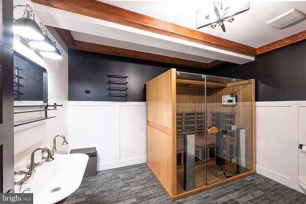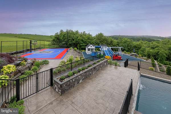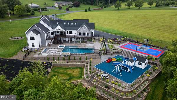 Experience unparalleled luxury in this custom-built Contemporary estate, perfectly sited on 2.42 acres of serene Pennsylvania countryside in Kutztown. Spanning 5,841 square feet of exquisitely designed living space, this residence artfully combines modern sophistication with resort-style amenities. Floor-to-ceiling windows frame sweeping vistas while ceramic tiled floors and high-end finishes flow seamlessly throughout. A chef's dream, the gourmet kitchen features top-tier appliances, custom cabinetry, and an expansive island for effortless entertaining. Relax in the sumptuous great room beside a sleek, linear fireplace, or step outside to discover your private oasis: a heated in-ground saltwater pool, integrated spa, custom fire-pit lounge, children's playground, and professional-grade basketball court. Unique amenities include an exercise room wired for the latest fitness equipment, a mudroom with built-in laundry and pet-shower station, and a three-car garage with abundant storage. Lower level offers five bedrooms and 3 baths, while the main floor provides the primary bedroom, ensuite bath featuring one of the two fireplaces in the home. Do not miss the 2nd full kitchen on the lower level! Comfort is assured year-round with central air and forced-air heating. This luxury executive home offers an unmatched lifestyle of refinement and recreation. Schedule your private showing today.