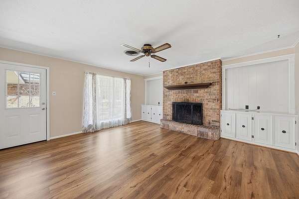 Inside, you?ll find a spacious living room featuring a cozy wood-burning fireplace and built-in shelving throughout. The home offers recent flooring with no carpet, creating a clean, modern feel. A formal dining room is perfect for gatherings, while the dedicated office overlooks the expansive front yard?ideal for working from home.