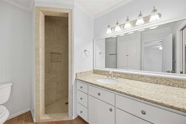 The primary suite is designed for comfort, featuring granite countertops, a walk-in shower, and a generous walk-in closet. Additional highlights include abundant hallway storage, a utility room with a deep sink, and a water softener system.