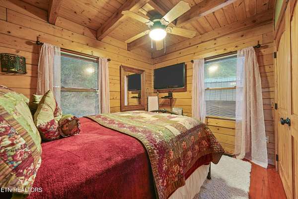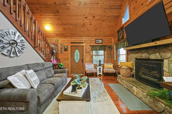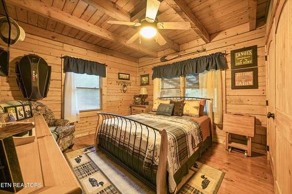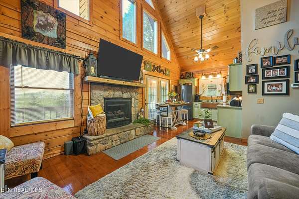 Beautiful log cabin on 8.23 acres, offered fully furnished! This well-maintained home features hardwood floors, granite countertops, copper sinks, marble/stone showers, and a copper soaking tub. Enjoy peaceful country living from the covered wraparound porch. The property includes a variety of fruit trees (apple, pear, plum, and cherry) and a newly built pond with a bridge leading to an island with pergola and fire pit. Additional features include RV parking with 30/50 amp service, paved driveway, and all appliances conveying, including washer and dryer. No HOA, no restrictions, and low county taxes.