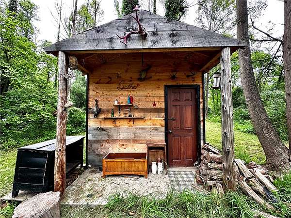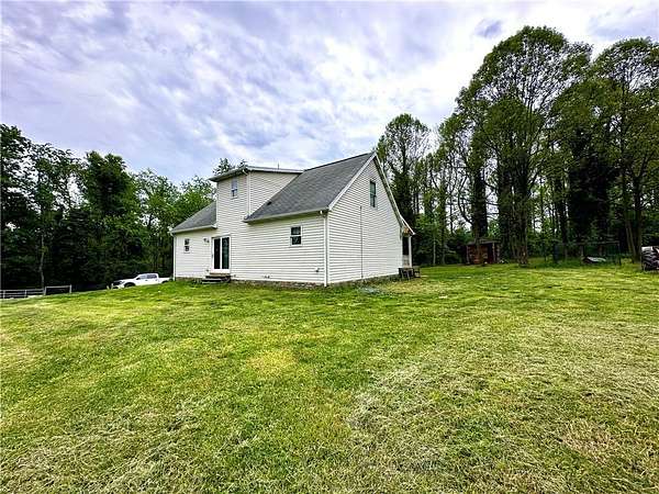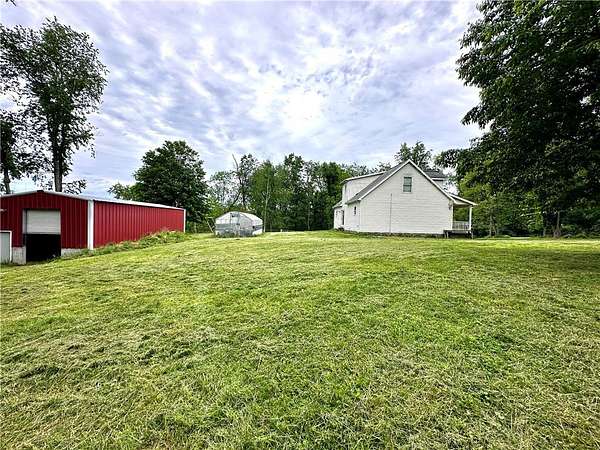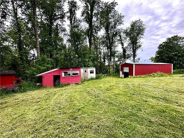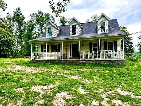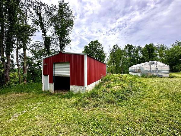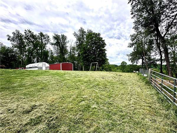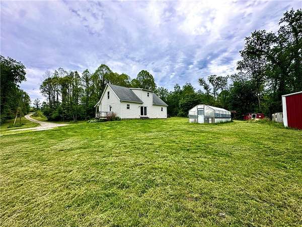 Your very own private country retreat. This 3-bedroom, 2-bath home, built in 2006, is situated on 31 beautiful acres of rolling countryside, accessed by a long private driveway. The property features a metal barn, greenhouse, multiple sheds, and a wood-fired outdoor sauna for peaceful relaxation.Enjoy the spacious front porch, ideal for entertaining or taking in the serene views. Inside, the home offers convenient first-floor living with a bedroom, full bath, and laundry. The large, open kitchen and dining area provide plenty of space for gatherings. Upstairs, you'll find two additional bedrooms and a second full bath.The full basement includes a canning kitchen and offers additional storage or potential for expansion. Whether you're looking to farm, garden, or simply enjoy a quiet lifestyle, this property offers a rare opportunity for country living with modern convenience.