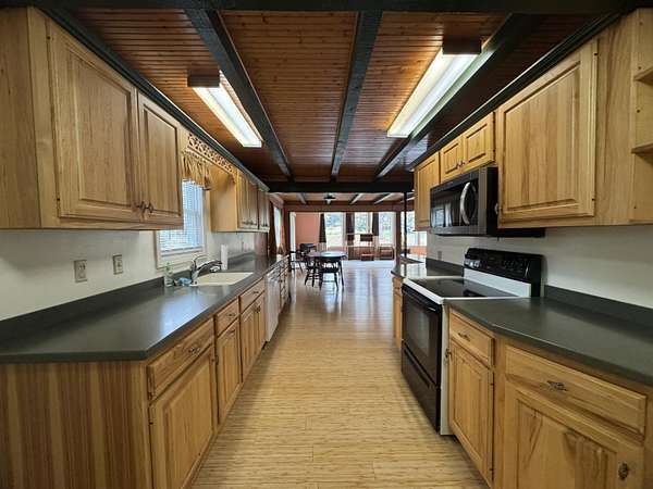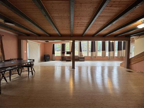 Welcome to your own slice of Maine paradise! This 3-bedroom, 2-bath home sits on a sprawling 65 acres of mixed fields and woods-perfect for gardening, homesteading or keeping animals. Inside, you will find a large great room with a full wall of windows that let in abundant natural light. The kitchen offers plenty of storage with two pantries. Just off of the kitchen is a first-floor bedroom with a walk-in closet, and a full bathroom featuring a walk-in/roll-in shower. A small mudroom connects the main house to the attached 2-bay garage for added convenience. Upstairs, a spacious bonus room with vaulted ceilings, built-in cabinets and a sink provides endless possibilities as it could easily be turned into an in-law apartment or guest suite. A patio door leads to a deck on one end while the other end features two additional bedrooms with built-ins as well as a full bathroom complete with a soaking tub. Outside, you will find a large 4-bay detached garage with three standard doors and one 10-foot door perfect for storing equipment or recreational vehicles. The long driveway ensures exceptional privacy, and the land offers ample space for horses, livestock or outdoor recreation with ATV trail access right from the property. Four ponds, apple trees, and abundant wildlife make this a nature lover's dream-ideal for hunting, exploring or simply just relaxing in peace. Stay comfortable year-round with a forced hot air furnace, wood furnace, pellet stove, and generator hookup. Enjoy total privacy while still being just 10 miles from shopping, schools, and Lake Wassookeag. Garland Pond is nearby as well.