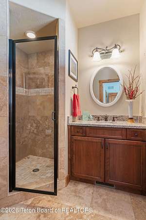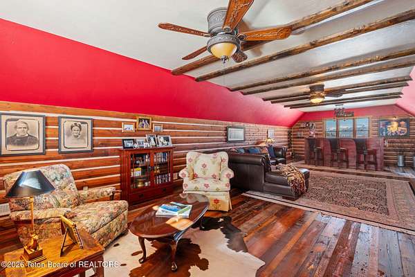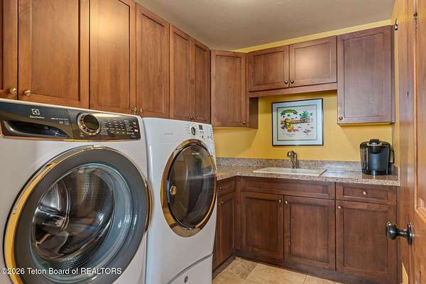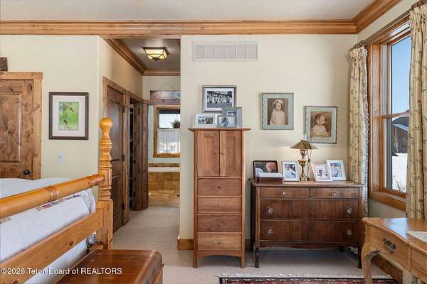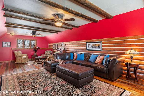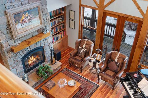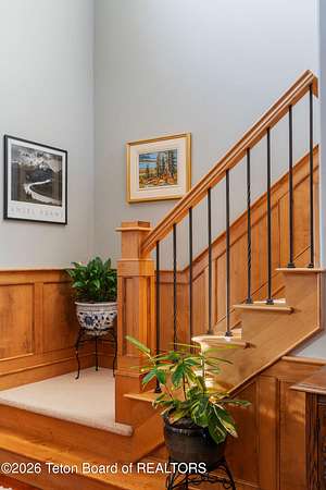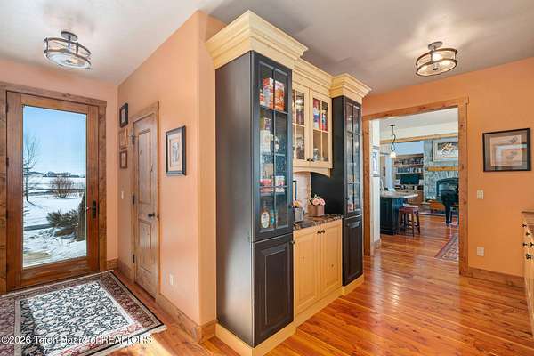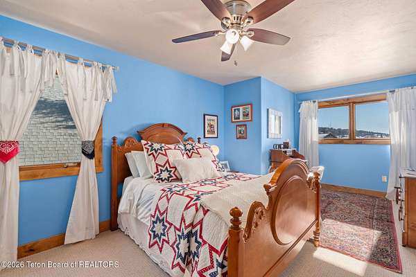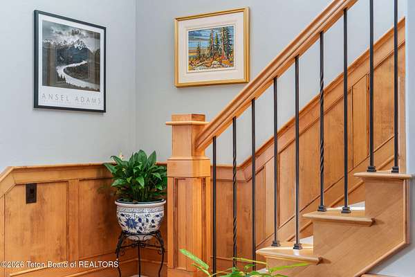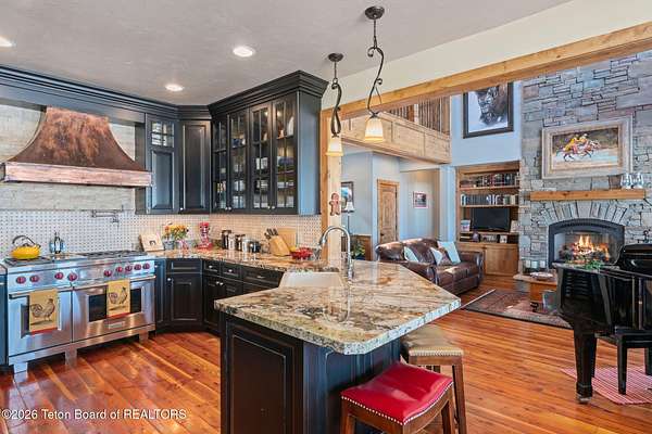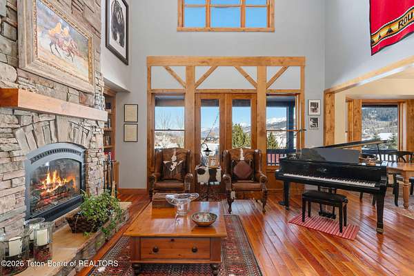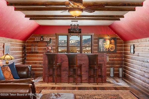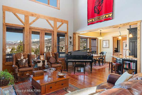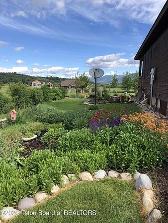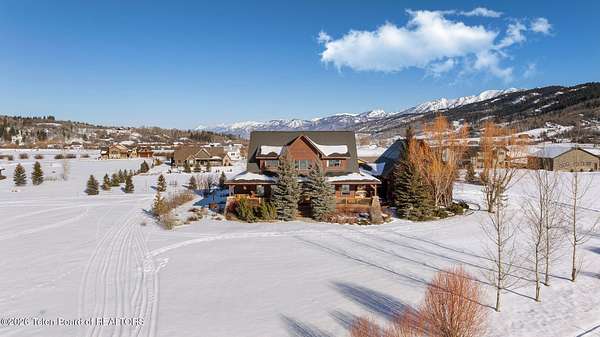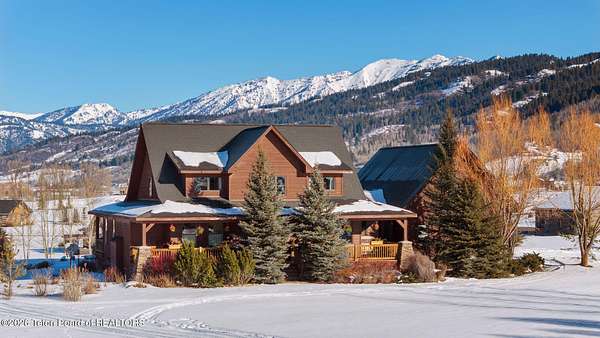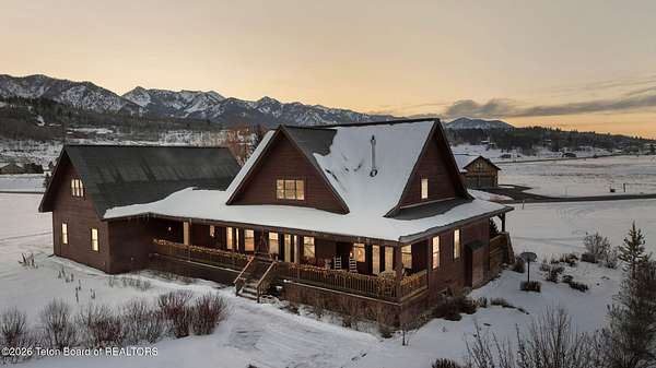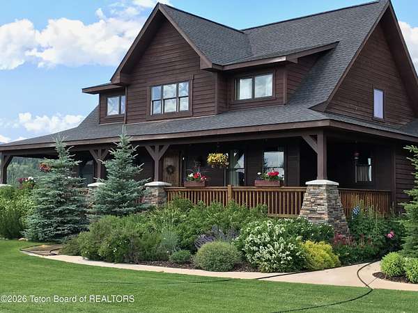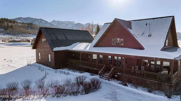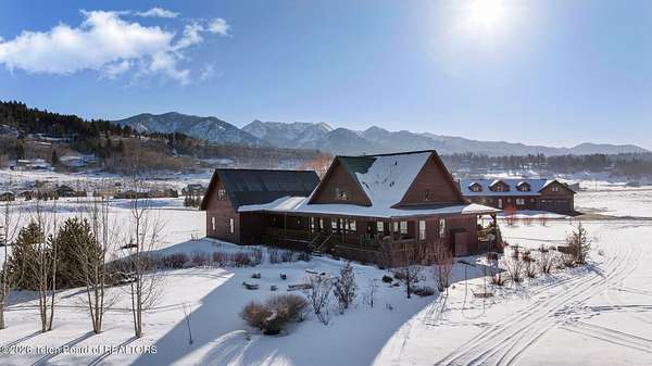 Set within the private enclave of Salt River Cove, a thoughtfully planned subdivision known for its nearby Salt River access, several private ponds, and generous common areas for outdoor enjoyment. This custom residence offers seclusion and a strong connection to the surrounding landscape across 2.11 acres spanning two lots. Built in 2009 and thoughtfully enhanced over time, the property balances refined craftsmanship with elegant Western character. The 3,363 sq ft main residence features 4 bedrooms and 3.5 baths, complete with an upstairs remodeled bonus room well-suited to function as a fifth bedroom or second living space. The home sits on 1.02 acres, complemented by an adjacent 1.09-acre lot, preserving views, privacy, and long-term options (building a guest home or shop/barn or barn with living quarters). Irrigation infrastructure (9 zones) serves the property, with many mature trees and flowering bushes, along with plantings that bloom and enhance the grounds all through the spring, summer, and fall seasons. The luxury kitchen was remodeled with distressed alder cabinetry crafted by Chris Woodward of Jackson, paired with real stone backsplash at the dry bar and including a custom walk-in pantry. The standout copper hood is complemented by marble backsplash with upgraded appliances featuring a 36" Wolf range (propane cooktop, electric double oven), Sub-Zero refrigerator with cabinet panels for a seamless look, and Electrolux steam washer and dryer. Throughout the home, alder doors and millwork, rough-sawn circle-cut pine flooring, and built-in bookcases reinforce the home's cohesive material palette. The living room is anchored by a floor to ceiling custom stone gas fireplace, 28' ceilings and a wall of windows, while double doors open from both the living area and primary suite to the outdoors. The primary bath features added comfort with heated floors, a large over-sized shower and soaking bathtub. The primary bedroom boasts two large walk-in closets with plenty of storage. Flooring throughout the rest of the home is carpeting and travertine tile. The guest cabin/bonus room is above the oversized 3 car garage, remodeled and expanded in 2013, showcasing antique Virginia barn wood, a built-in custom wood bar with copper surface, and high ceilings with wood beams, offering a distinctive, authentic and inviting extension of the main home. Hand-laid natural stonework and wood pathways extend the living spaces into the landscape, leading to a private hot tub positioned for nighttime star viewing and a fire pit thoughtfully sited for gathering. The setting captures 360-degree views of the surrounding Caribou National Forest, Black Mountain, and peaks of the Snake River and Salt River Ranges creating a composed and intentional outdoor environment. The residence has been professionally repainted, meticulously maintained, and is a pride in ownership-one time owner home. Located within one of the valley's most discreet and sought after subdivisions yet only 35 minutes from world famous Jackson Hole, 10 minutes from the Palisades Reservoir, and 5 minutes from the convergence of 3 rivers (The Grey's, Salt & Snake) as well as access to the Bridger-Teton National Forest (the Greys River Corridor which runs 60+ miles) With year round recreation in every direction, and an elk refuge minutes away, this is the Wyoming paradise dreams are made of!