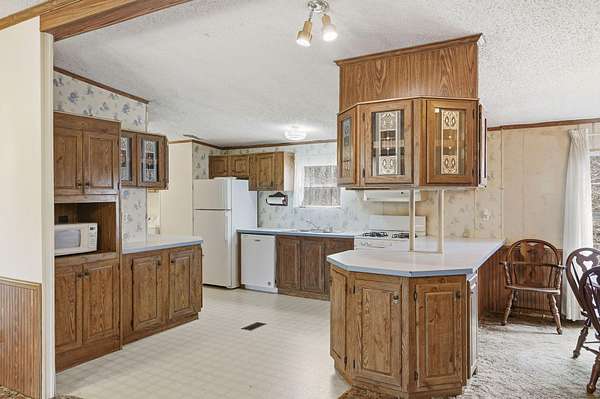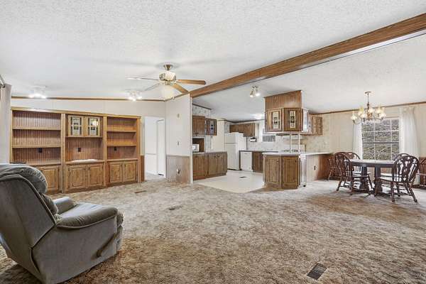 Set on 3.67 acres just outside city limits, this 3-bedroom, 2-bath manufactured home offers a quiet, private setting just minutes from town. The home has a brand new roof and features an open-concept layout with a spacious living area and built-in entertainment center. The kitchen provides ample cabinet space and comes fully equipped with a refrigerator, freezer, washer, and dryer that all stay.The primary suite includes a walk-in closet and private bath with a soaking tub and separate shower. Enjoy the outdoors from the enclosed front porch or side deck, both ideal for relaxing in the peaceful surroundings.The 26x35 shop with concrete floor, overhead door, and propane heat adds excellent space for storage, hobbies, or a workspace.Located in a flood zone with no history of interior flooding. The land rises behind the home to higher ground outside of the flood zone, offering additional usable space with potential for building or expansion.Property is being sold as-is.
