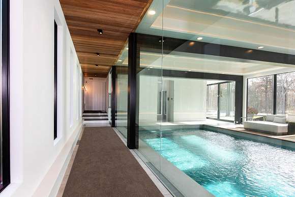 Set on a secluded 10-acre East Hampton estate, 176 Two Holes of Water Road is a move-in-ready residence that blends timeless traditional architecture with sophisticated modern design. Originally built in 2000 and thoughtfully renovated in 2020, this 10,878+/- sq. ft. home showcases exceptional craftsmanship, light-filled interiors, and refined detailing throughout. The residence offers five spacious bedrooms, six full and two half bathrooms, and elegant living spaces throughout including a formal parlor, four-season sunroom, and glass-walled family room adjoining a custom chef's kitchen. The primary suite is a private escape, complete with a grand fireplace framed by antique millwork, multiple sitting areas, a roof terrace, and a luxurious spa-inspired bath with a custom walk-in closet. Among its standout features is a dedicated indoor wellness retreat, designed to offer year-round relaxation and rejuvenation. This private spa-like sanctuary includes a serene indoor pool, sauna, steam shower, and ample space for lounging, creating a resort-caliber experience within the comfort of home. Outdoors, enjoy a gunite pool, covered verandas, a fire pit, and outdoor kitchen ideal for dining and entertaining amid beautifully landscaped grounds. Additional highlights include a gym, game room, and attached three-car garage. Just minutes from East Hampton Village, beaches, and restaurants, this extraordinary property offers the perfect balance of modern luxury and serene East End living.