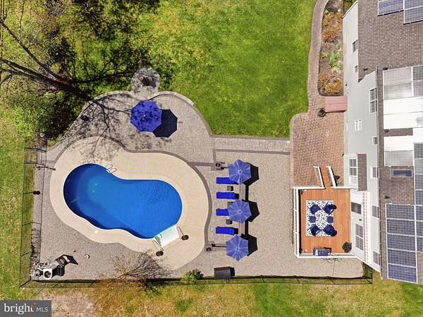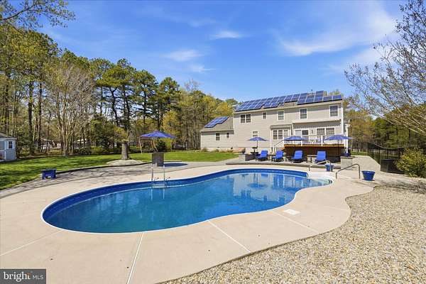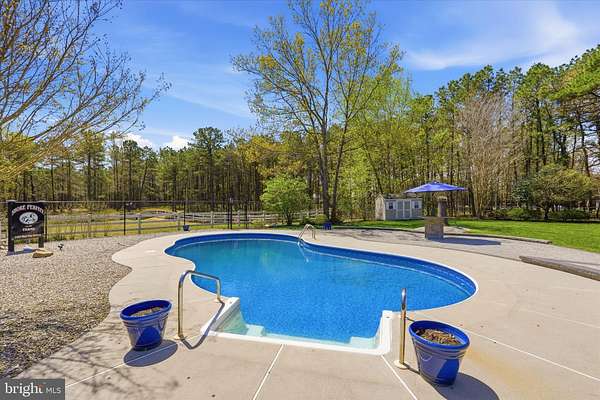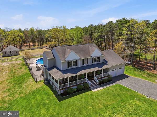 Brand new to the market! Luxury farmhouse nestled on 3.42 acres of pristine Pinelands offering the perfect blend of privacy, and nature. This spectacular residence merges elegant charm with modern finishes, focusing on indoor-outdoor living, stunning forest views, and spacious acreage. This lush relaxing environment boasts a heated inground pool and a 3 stall tack room for your horses. Front yard entry gates lead to the circular driveway and charming wrap around porch. Enter into the foyer with a NEW grand staircase, NEW rich hickory hardwood floors & NEW crown moulding throughout. Entirely NEW kitchen with pearly white quartz countertops, and endless cabinets. Living room showcases NEW French doors to the porch. The NEW family room boasts a decorative cozy fireplace with sliders to the sundeck. Bonus... a NEW first floor bedroom & full bath. Upstairs is all NEW including the main bedroom suite with lux soaking tub/double quartz vanity/shower/ WIC! Come preview the dream!!! Extras include: Solar panels are owned (no payment) NEW pool pump, NEW pool heater, NEW shutters, NEW crown & base moulding, New fans & lighting, All new pavers around the pool, pub table, new landscaping, and so much more...WOW!