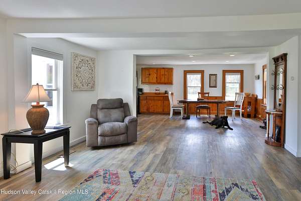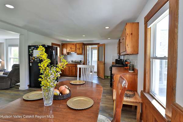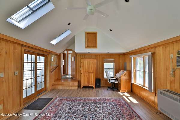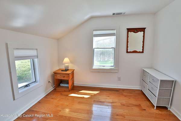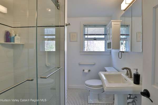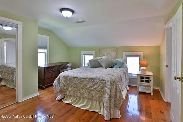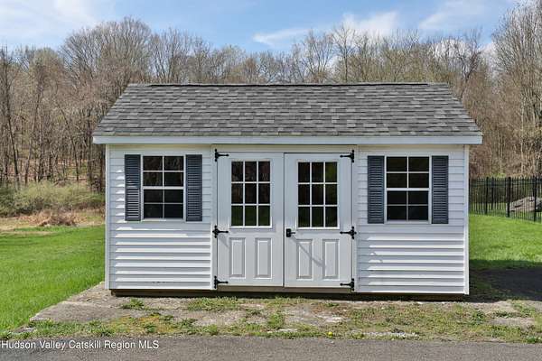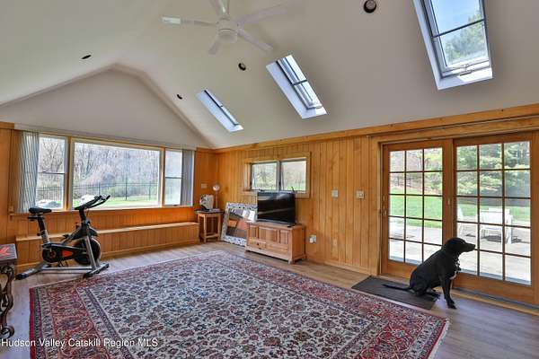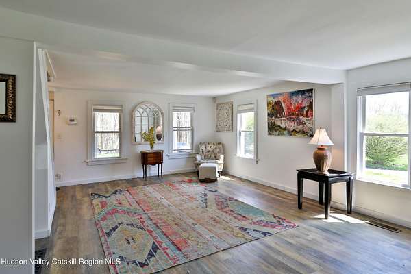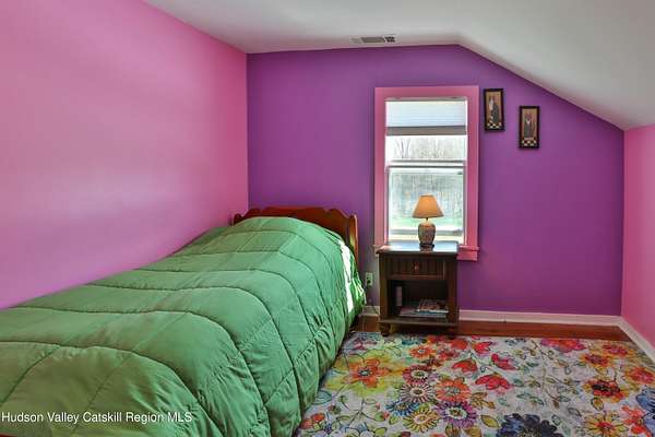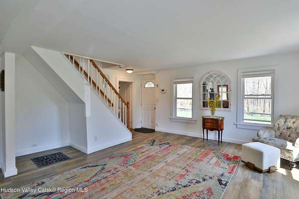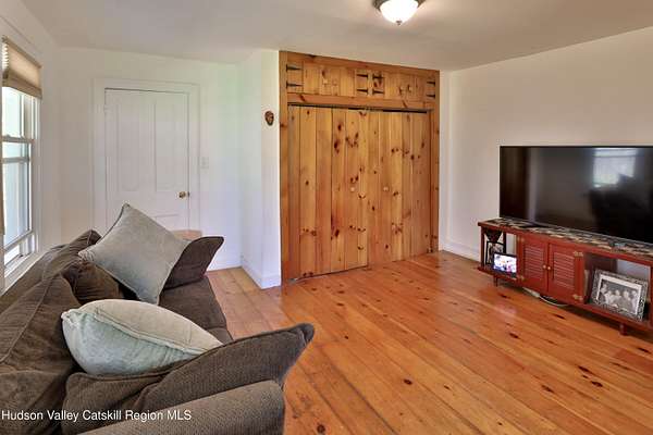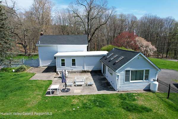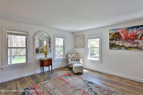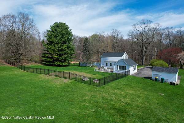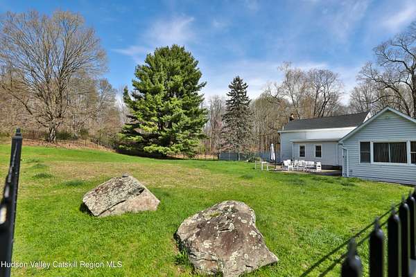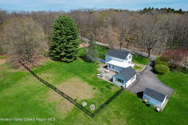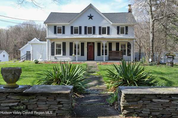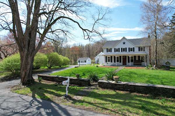 Large, protective, ancient trees and handcrafted, artisan-made, stone walls beckon you towards this well-built, nearly 200-year-old, classic Red Hook farmhouse. This 4 Bedroom home has 3 full baths and a large sunroom overlooking the yard, perfect as a private guest suite or home office with a designated entrance and full bath. The expansive 10.1-acre parcel boasts a cherry and peach tree, a spring-fed pond, a meandering stream, and acres of private woods to explore and make trails in. There is enough space for horses. Wood beams and historic remnants mark an old barn site near the pond. The unusually large, fully-fenced-in yard has iron fencing and a patio for entertaining, with ample space for a garden and a pool if desired. There are 3 bedrooms upstairs with a bathroom with pocket doors leading to the main bedroom. Laundry is upstairs as well. There is a bedroom on the first floor that could also be used as a den or library with the original hardwood flooring. The main floor has an open kitchen leading to the dining area and opening to the living room. Some of the many upgrades include new renovated bathrooms, a new roof with a warranty as of 2026, reinforced basement and stonework, updated hot-water heater, central-air, a full-house water filtration system, a storage shed that matches the home, and a Janelli security system. This is a genuinely solid home, built to last, on pastoral grounds filled with history and acres to explore. The location is perfectly serene and an ideal refuge, yet 10-minutes to the center of town. Williams Road is arguably one of the most beautiful roads in Red Hook and is quiet enough for long walks, biking, and jogging. Close to Tivoli, Bard, Rhinebeck, and the Taconic.
