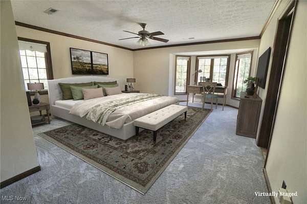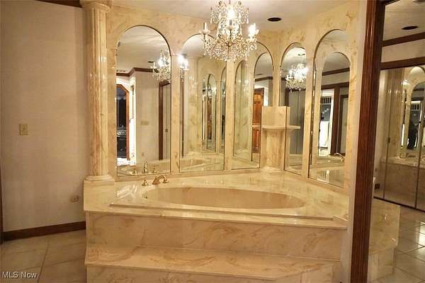- Bar, Bookcases, Built In Features, Chandelier, Crown Molding, Eat In Kitchen, Jetted Tub, Kitchen Island, Natural Woodwork, Soaking Tub, Stone Counters, Walk In Closets, Wet Bar
