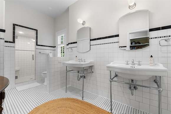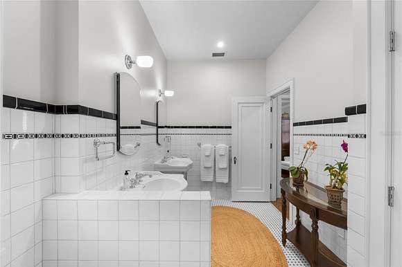 With over 6100 total SF space, it includes 5 bedrooms, 4 full bathrooms, and 2 powder rooms. Ideal for both grand entertaining and intimate family life. Original details, such as high ceilings and wood-burning fireplaces, have been preserved, fine woodwork, and more offer a glimpse into early 20th-century craftsmanship. The open air terraces offer unique cocktail party backdrops underneath the stately oaks and moonlit stars. The bathrooms are both modern yet steeped in its original aesthetic - truly a masterpiece in design and appeal.