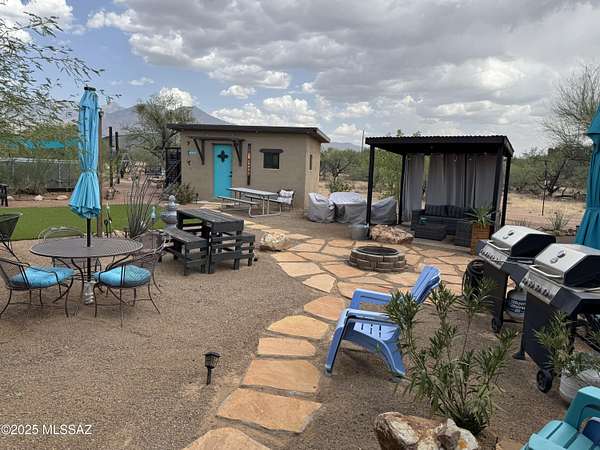 Are you looking to get out of the city? Gated, unique rare tiny home ranch, 4.89 acres ranch for sale, with 3 separate bdrms and two baths. Plenty of room for the goats, chickens, horses and kids, greenhouse and any vision you may have. Boasting gorgeous Elephant head views to the east and stunning sunsets to the West. Enjoy while sitting around the outside fire pit. This property has No HOA and a 1/5 water well share with a BRAND new well. Tranquil ranch style seclusion and easy access to Green Valley shopping the best of both worlds. This Ranch has off grid living avail, some solar and wind power, full electric, water storage, rain capture, and all the modern conveniences, hot tub, out door shower.. Horse pasture and hitch post. Call for appt. MUST SEE