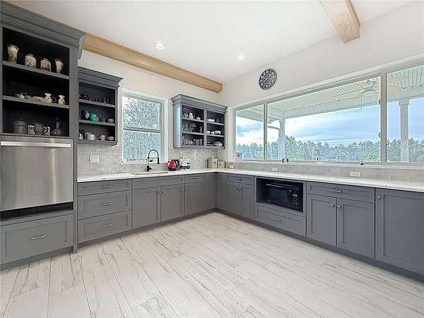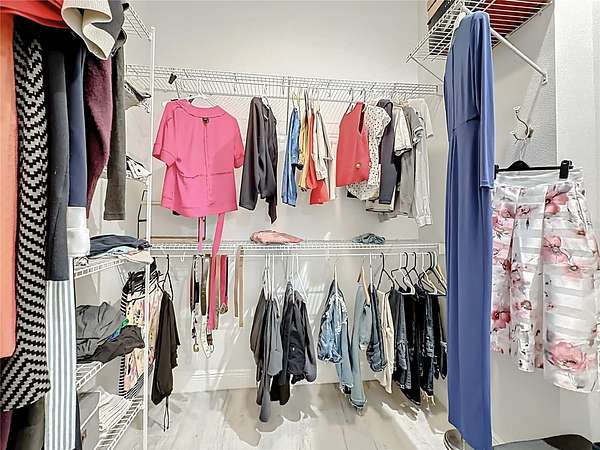 - Ceiling Fans(s), Eat-In Kitchen, High Ceilings, Kitchen/Family Room Combo, Primary Bedroom Main Floor, Solid Surface Counters, Solid Wood Cabinets, Stone Counters, Thermostat, Walk-In Closet(s)