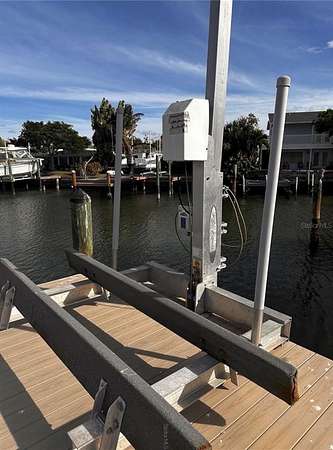 Rare opportunity to purchase a waterfront lot ideally located at the end of a quiet channel in the desirable Redington Shores community. The property offers approximately 50 feet of water frontage with open water views and a peaceful coastal setting. The 90' x 50' lot provides an excellent site for future development, subject to buyer due diligence, zoning, and permitting. Recent improvements include new limestone rip rap (2025) and a dock constructed with weather-resistant composite decking. A swivel lift for a small boat or personal watercraft is present; electrical box replacement is needed (buyer to verify condition and functionality). Enjoy scenic water views and the natural beauty of the surrounding coastal environment, with frequent sightings of local marine life. Conveniently located near direct beach access across Gulf Blvd., as well as nearby dining, shopping, and recreational amenities including John's Pass Village and Indian Rocks Beach. Additional features include a multi-zone underground irrigation system connected to reclaimed city water (buyer to verify existence, condition, and operability during inspection period). Property is being marketed for land value only. Buyer to verify all information, including but not limited to lot dimensions, build-ability, setbacks, utilities, dock and lift specifications, zoning, and any redevelopment requirements.