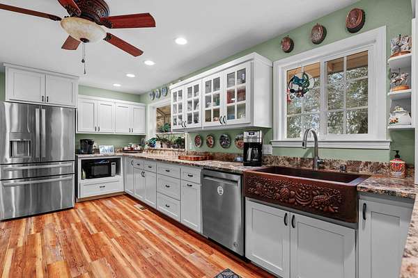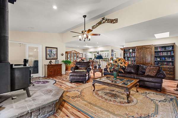 Welcome to this fantastic 3-bedroom, 2-bath home offering 1,773 sq ft of comfortable living space on 2.38 picturesque acres. This equestrian dream property features a 2-stall barn with a feed room and tack room. No need to board your horses! Inside, enjoy a spacious remodeled kitchen with granite slab countertops, an island with storage and a breakfast bar, and abundant cabinetry. Two skylights shed the dining area and expanded living area with light. A cozy woodstove efficiently heats the home during winter months, helping to reduce utility costs. Outside you'll find flat, usable land dotted with mature trees plus several fruit trees. Make it yours today!