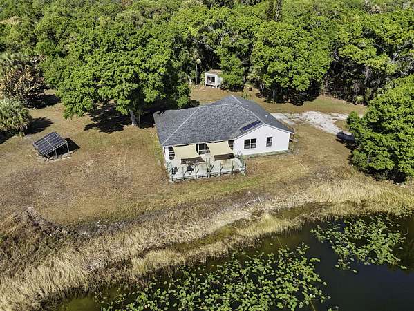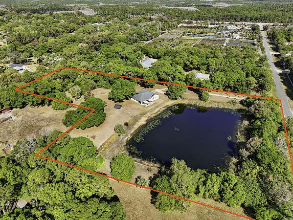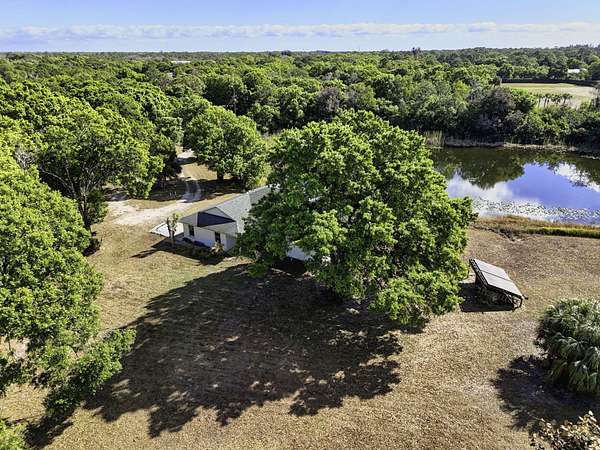 Your opportunity awaits! 4.56 beautiful acres with a gorgeous 1-acre spring fed pond on one of the best streets in Jupiter Farms! Rare old granddaddy oaks, privacy from the street and PLENTY of space for a custom estate home, barn, workshop or just about anything else you may want. Renovate and live in the existing 3/2/2 home while you build your dream home! This CBS home was positioned for a peaceful view of the pond...watch the wood ducks swimming as the sun goes down each night. Roof was updated in 2020, along with solar panels. Excellent location on a paved road, one minute to Indiantown Road, three minutes to I-95 and the Florida Turnpike and less than 15 minutes to the best beaches in Palm Beach County. Don't miss out on this amazing property!