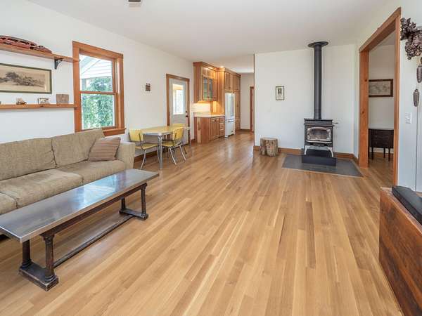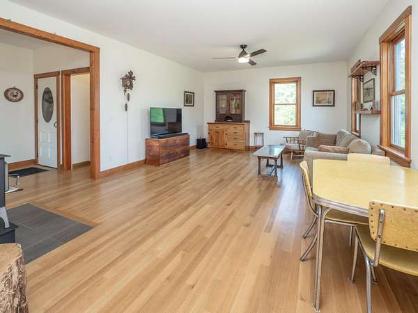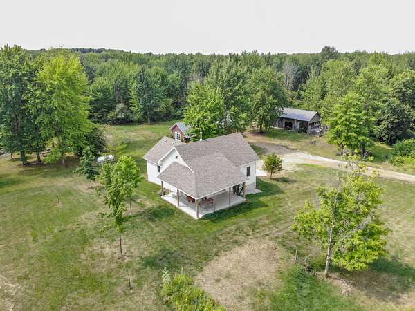 37.4 Acres Hopkins School District. This 2019 ranch home sets down a winding driveway and offers privacy, peaceful surroundings and beautiful views of the countryside. Inside you will find, white oak flooring, solid wood reclaimed farmhouse doors, one with beveled glass, and recessed lighting. The kitchen has white oak and fir cabinets and a pantry, with a door that accesses the covered front porch. 2 main floor bedrooms and 2 full baths, one with a 6' tub. The lower level has daylight windows, a third bedroom and finished family room. The front covered porch is perfect for relaxing with your favorite beverage and a good book, or conversation with friends and family. This property is rolling with tillable acreage and a mature hardwood forest in the back. One barn has a workshop with 220 electric service, and a finished room that has potential for a rustic guest suite. A second barn for equipment storage also has a loft and lean to. Down a path in the woods is an old barn with lots of charm and character, where a wedding was once performed. If you are looking for a place for hunting, farming, livestock, chickens, gardening, snowmobiling, cross country skiing, or any other outdoor activities you will love this property. Located between Grand Rapids, Kalamazoo and Holland, with easy access to 131 expressway. A short drive to the casino, Bittersweet Ski resort and the Lake Michigan shoreline. RESERVED items include the wood burning stove, its base and chimney pipe, hoist in the workshop. The antique hooks on coat racks, and throughout the house are reserved. Seller will replace hooks with new ones or give a credit to buyer.