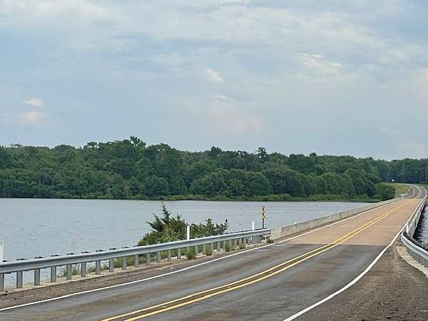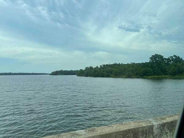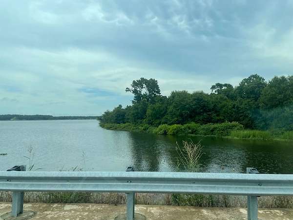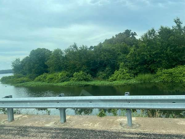First driveway on the left/north side off the FM 514 bridge headed east.