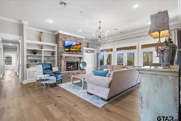 Welcome to your own private resort...where nearly two acres of lush, manicured grounds set the stage for a lifestyle most only dream about. From the moment you arrive, the stunning landscaping and grand entry make an unforgettable first impression. Inside, you'll find an expansive and thoughtfully designed floor plan featuring two distinct living areas. The main living room is anchored by a beautiful fireplace and warm hardwood floors...the perfect backdrop for cozy evenings at home. Rich architectural details and an abundance of natural light flow throughout every room. The gourmet kitchen is the heart of this home, showcasing granite countertops, premium stainless steel appliances, a generous breakfast bar, walk-in pantry, and abundant cabinet space. The formal dining room sets an elegant tone for entertaining, while the casual eat-in kitchen keeps everyday living effortless. Work from home in well-appointed spacious office. Retreat to one of two magnificent primary suites, each featuring spa-like baths and oversized walk-in closets...a rare and luxurious offering. Two additional bedrooms and two and a half baths ensure comfort and privacy for family and guests alike. This home is designed perfectly for multi-generational living. Outside, your personal oasis awaits. The expansive covered patio areas and sparkling swimming pool create the ultimate space for entertaining or unwinding in total privacy. Car enthusiasts, hobbyists, and adventurers will love the massive 30x40 shop...with plenty of room to store your RV, boat, and everything in between. Homes like this don't come along often. Schedule your private tour today and experience it for yourself! Another Perk...No HOA
