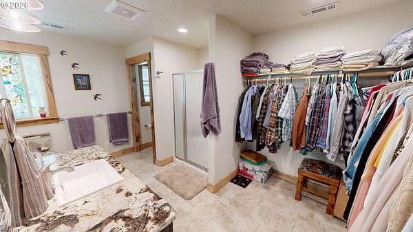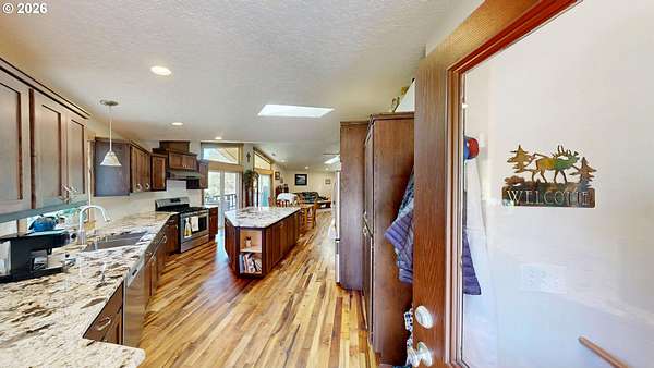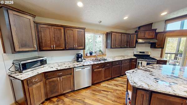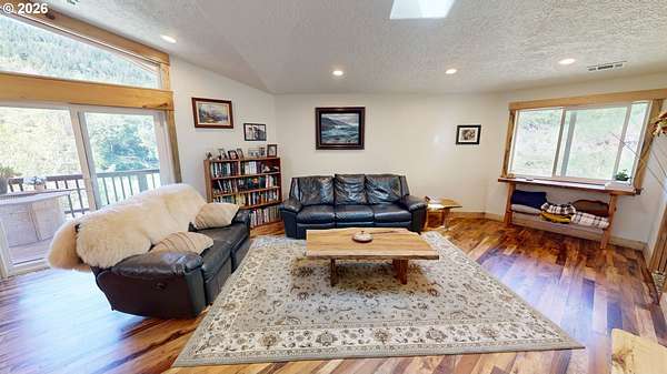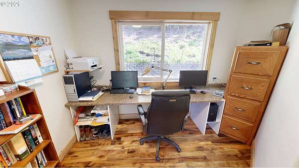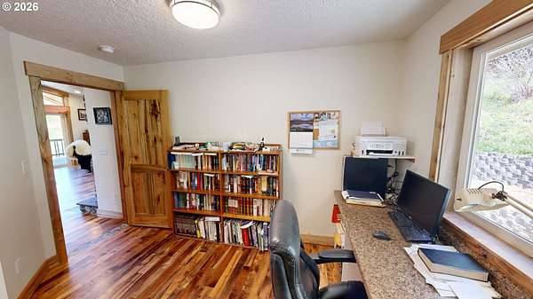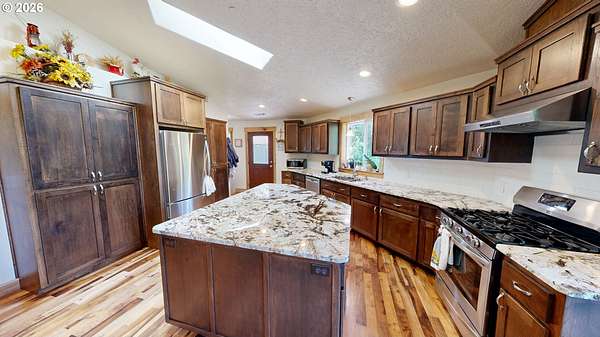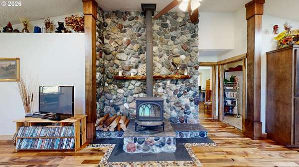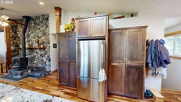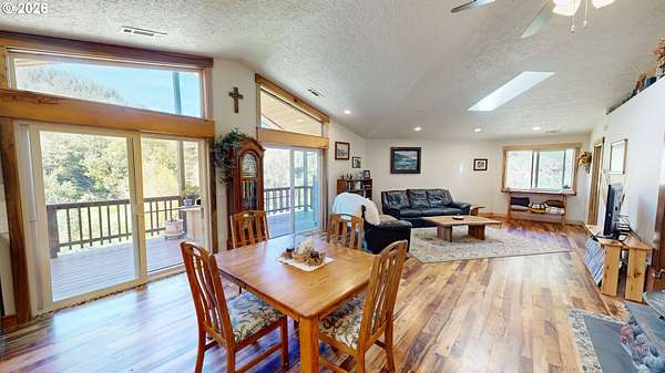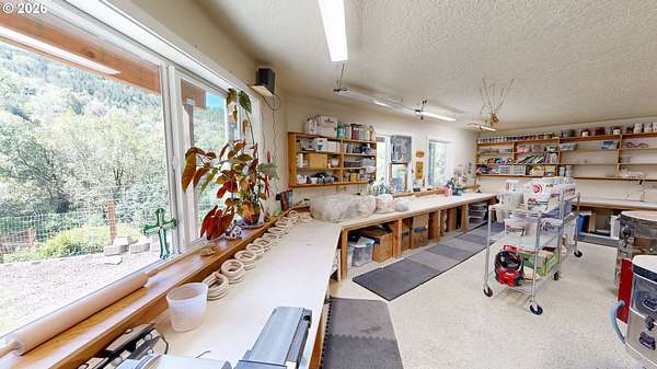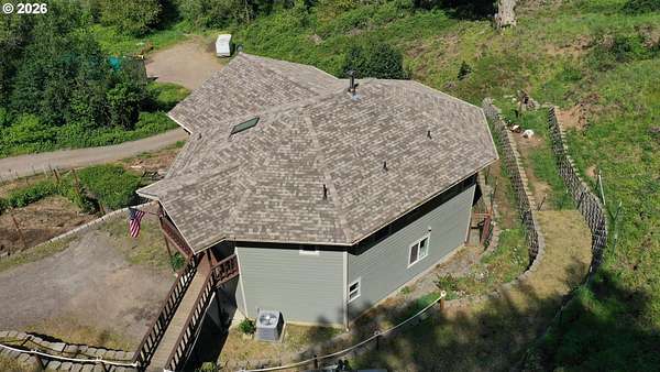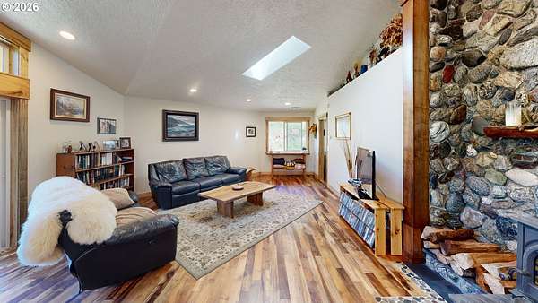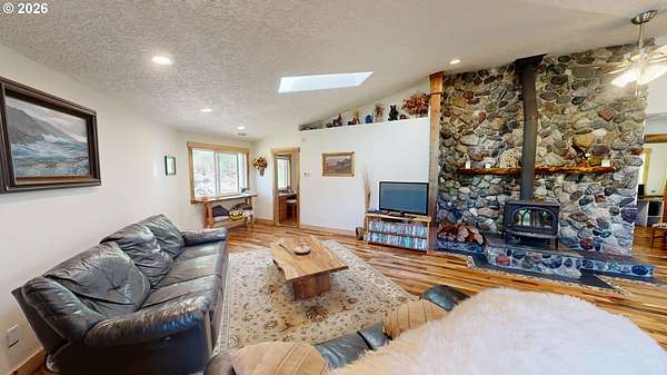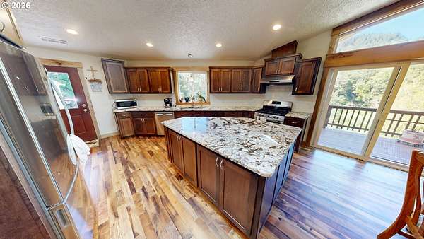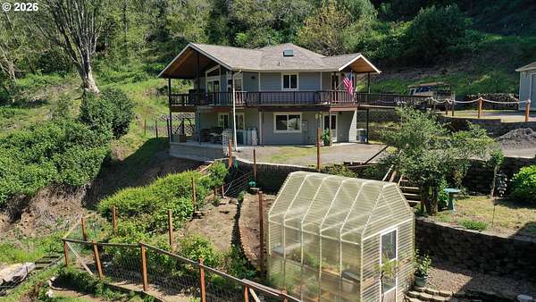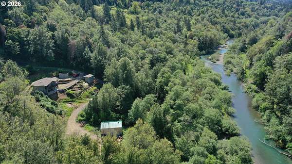 Appointment only no drive bys please. Private road with 4x4 or AWD access only due to steep grade driveway which is easily navigable with the appropriate vehicle. Tucked away on 5 private acres just 12 minutes from downtown Brookings, this one of a kind property offers a rare blend of seclusion, craftsmanship, and versatility featuring a custom built 2 Bed, 2.5 Bath home thoughtfully constructed by the owner. With exceptional attention to detail throughout, much of the interior including the doors, trim, and flooring was milled on site. Each piece of the Myrtlewood flooring was diligenty laid to perfection giving it a solid, yet warm feel throughout. Custom cabinety using big leaf maple from the property pairs well with the rustic live edge granite countertops that were part of a long thought out process to create this masterpiece. The kitchen also features a gas Kenmore stove, Refrigerator and Bosch dishwasher ensuring modern appeal and longevity. The main living space is anchored by a floor to ceiling Chetco River rock fireplace, complemented by custom tile and stonework that carries throughout the home and enhances its artisan feel. The lower level is set up for versatility and flexibility, It includes a dedicated room with waterproof walls, floors, and a functional drain, making it ideal for artists, hobbyists, or those seeking a unique workspace. With only one primary load-bearing wall, the layout also presents a great opportunity to easily add up to 2 additional bedrooms if desired. Equipped with an oversized 3.5-ton heat pump system, water or summer are no problem. The wood stove and pellet stove are ideal for off grid sustainability and comfort, too. Outside, the property continues to impress with its private, natural surroundings. A shop and multiple outbuildings provide ample space for storage and tinkering. A garden most would dream of. Just a 5 minute walk to the N Fork Chetco river bar from the front door thru a cleared wooded path on the property.