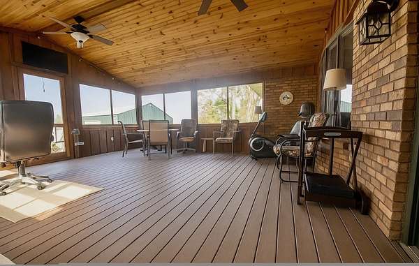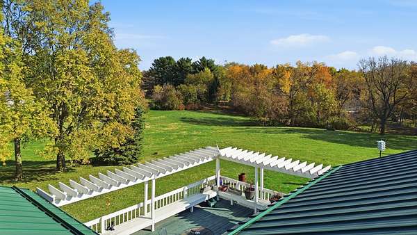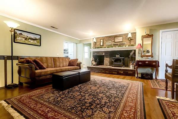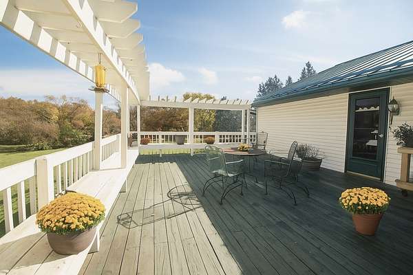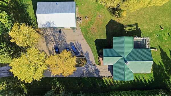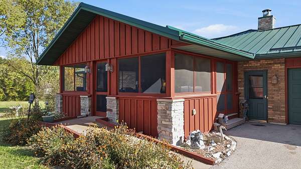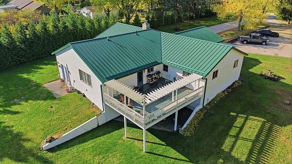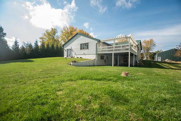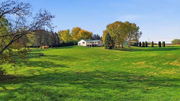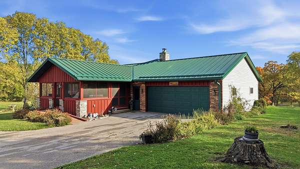 Experience country living at its finest in this immaculate 3-bedroom, 2-bath home set on 5 picturesque acres. The property features stunning hardwood flooring, a spacious open kitchen with island, and a formal dining room currently used as a den. Enjoy the convenience of main floor laundry, a bright Florida room overlooking the peaceful backyard, and a large screened front porch perfect for relaxing mornings or summer evenings. The inviting living room includes a cozy wood-burning fireplace, adding warmth and charm to the main level. Step from the kitchen onto the large deck-ideal for entertaining or simply taking in the serene views. The full finished walkout basement expands your living space with a large family room, bedroom, and a full bath featuring a jetted tub and walk-in shower, plus a second laundry area for added convenience. Walk right out to the patio and enjoy the beautiful outdoor space. A 40x60 outbuilding offers endless possibilities for storage, workshop, or hobby use. The home also includes an attached 2-car garage. This exceptional property provides space, comfort, and privacy-all within easy reach of town amenities. Estate sold as is, seller is in process of getting well and septic inspected.