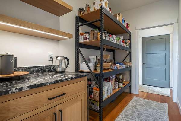 - Built-In Features, Ceiling Fan(s), Central Vacuum, Double Vanity, Dual Flush Toilet(s), Enclosed Toilet(s), Fiberglass Stall Shower, Granite Counters, High Speed Internet, In-Law Floorplan, Kitchen Island, Linen Closet, Open Floorplan, Pantry, Primary Downstairs, Shower/Tub Combo, Smart Thermostat, Tile Shower, Vaulted Ceiling(s), Walk-In Closet(s), Wet Bar, Wired For Data, Wired For Sound