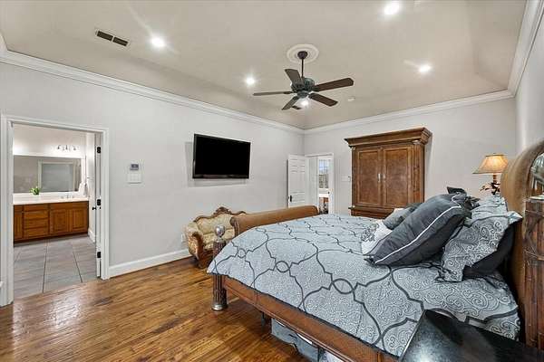 Agriculture Land of Almost 20 acres means Tax Rate lower. This property is nestled among rolling hills and overlooking a serene private pond, this stunning Midlothian estate offers the perfect blend of luxury, functionality, and peaceful country living. This thoughtfully designed home features hand-scraped hardwood floors, abundant natural light, and exceptional storage throughout—including extensive built-ins in the office, which can easily serve as an additional bedroom. Extras include 2 Dishwashers, 2 Disposals, 2 Electric Water Heaters. The home features two private en suite bedrooms, ideal for multigenerational living or hosting guests in comfort and privacy. Plantation shutters and blackout window coverings provide both elegance and practicality. Step outside to enjoy the fully sprinklered yard, including the backyard and side areas, ensuring lush, year-round greenery.Equestrian and hobby enthusiasts will appreciate the well-appointed barn with four stalls, a dedicated cattle tack room, and a secluded private greenhouse tucked nearby—perfect for gardening year-round. More info in documents
