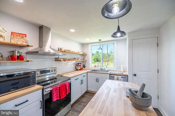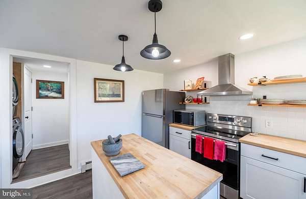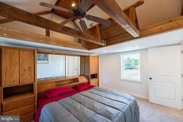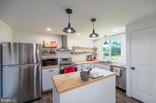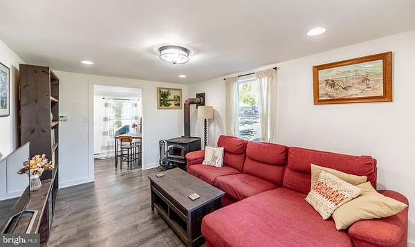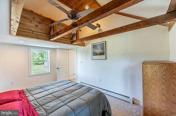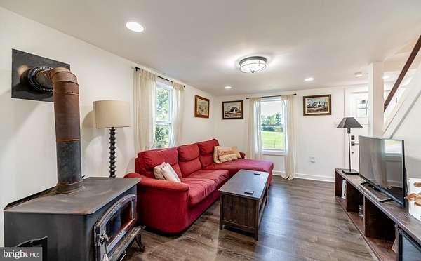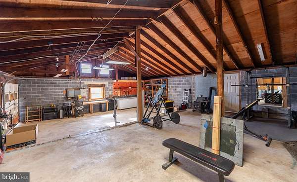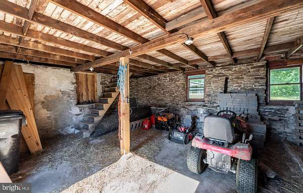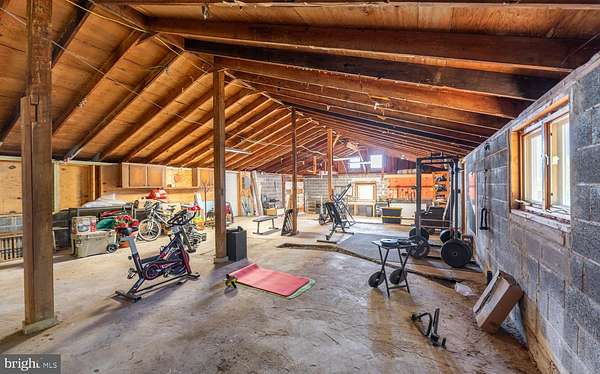 Welcome to your dream farmette in Pennsburg, PA located in Milford Township, Bucks County! This fully renovated, move-in ready home with picturesque pastures is perfect for equestrians, homesteaders, or anyone seeking a peaceful country lifestyle. With a bright and airy modern farmhouse layout, the main floor features a cozy living room with a wood-burning stove, a stylish wet bath, an upgraded kitchen, an open dining area, and a charming bedroom or home office. French doors lead out to an inviting outdoor patio space with a fire pit and breathtaking views of distant rolling hills-perfect for entertaining or relaxing under the stars. Upstairs, the private primary suite showcases beautiful, exposed beams and a loft area for extra storage or creative use. Across the hall is an additional spacious bedroom with walk-up access to a functional attic. The home also includes a newly restored, waterproofed basement for added storage and peace of mind during wet weather. Beyond the main house, the property features three impressive additional buildings: a fully equipped stable with two stalls, a tack room, feed area, crossties, and a chicken coop; a two-story historic barn offering abundant hay and equipment storage; and a massive shop with endless potential-perfect for use as a workshop, studio, home gym, or more. The fenced pastures feature heavy-duty woven wire and durable log posts, ready for livestock. A spacious driveway easily accommodates horse trailers and multiple vehicles, while quick access to I-476 via Route 663 puts you just 45 minutes from Philadelphia, 20 minutes from Allentown, and 5 minutes from town. Surrounded by mature trees, you can immerse yourself in nature just minutes from urban life.