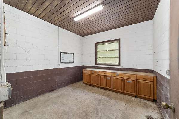 Concrete block 4-stall barn with tack room, feed room, workshop, and full bath