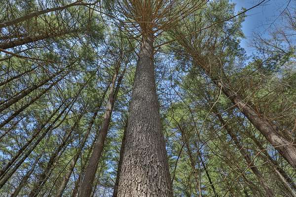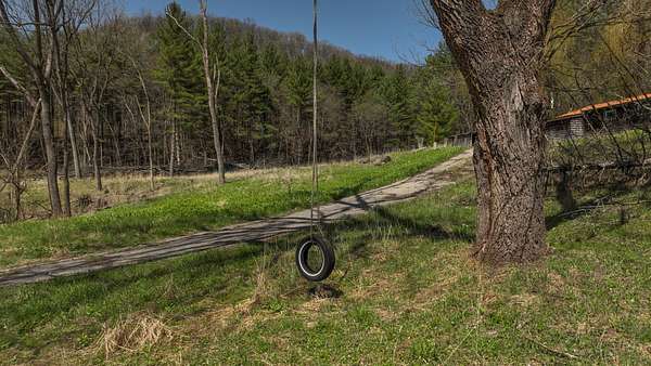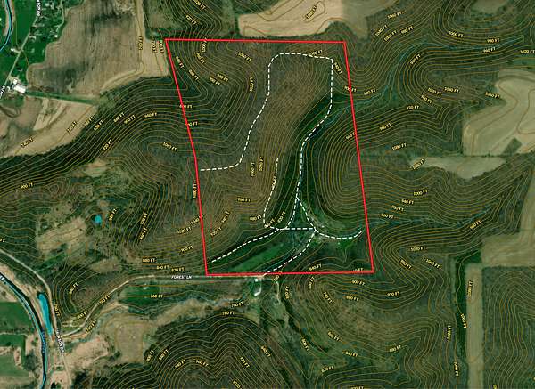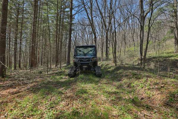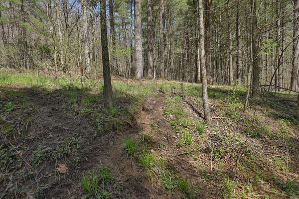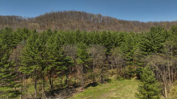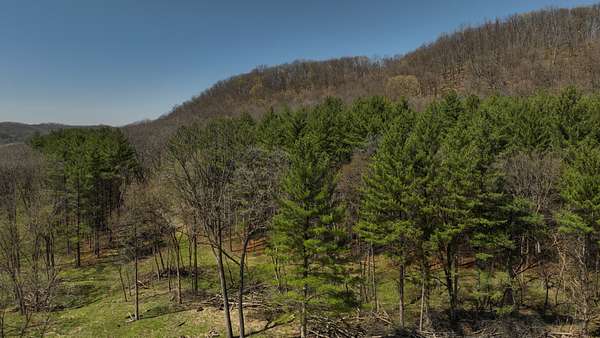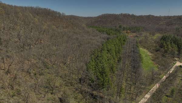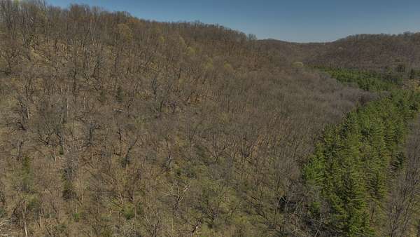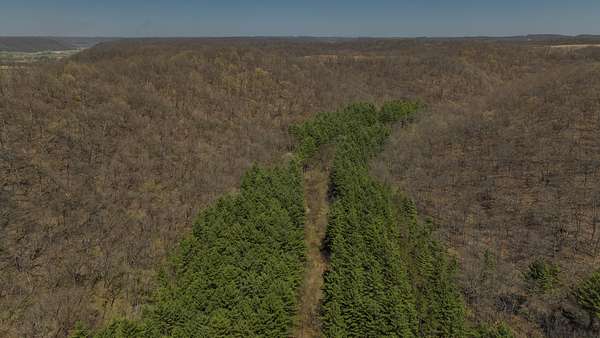 The land itself is where this property separates from anything else on the market. Bluff sides are laced with a near-endless stand of intermediate walnut, offering both aesthetic beauty and future timber value. A select cut conducted several years ago has set the stage for continued forest health and potential income. Down below, the valley floor is blanketed in towering red and white pine—massive, cathedral-like stands that create both thermal cover and visual impact. Mud-worn deer trails weave through these bottoms, connecting ridge to ridge in a way that seasoned hunters immediately recognize.
