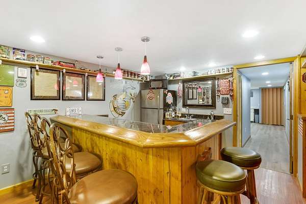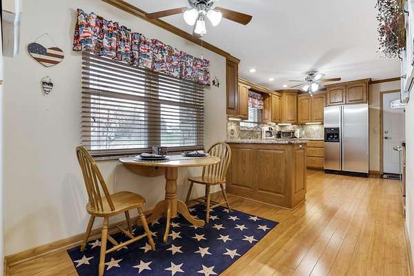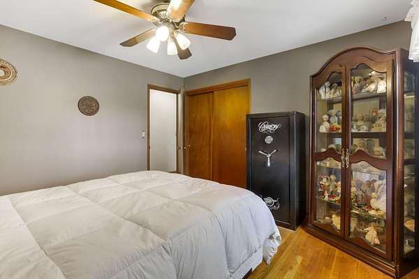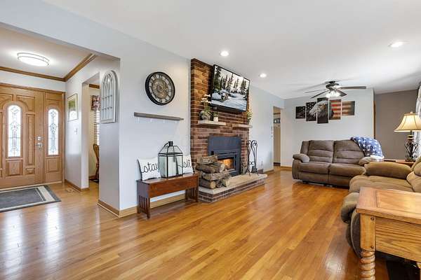 Experience the rare opportunity to enjoy country-style space within the city, offering exceptional flexibility for both everyday living and hobbies. Whether you need room to spread out or space for vehicles, equipment, or projects, this property delivers unmatched versatility. The home offers over 2,700 square feet of finished living space, thoughtfully designed for comfort and entertaining. Highlights include a cozy living room with a wood-burning fireplace, a primary bedroom with walk-out access to a large concrete patio, and a spacious lower-level rec room complete with a wet bar, fireplace, and plenty of room for a pool table. The kitchen is beautifully appointed with custom oak cabinetry, granite countertops, and stainless appliances. Additional features include gleaming bamboo hardwood floors, updated bathrooms, and a large laundry room with ample space to spread out. The heated attached garage provides abundant storage and year-round functionality. A hot water recirculation system ensures consistent and readily available hot water. Numerous major updates have already been completed, offering peace of mind for the next owner. Improvements include a new A/C, front entry door, asphalt driveway, and all-new water lines, along with replacement windows and gutters, a well installed in 2020, and a water filtration system. A standout feature is the 44x56 three-bay barn, fully insulated and heated by both a gas furnace and wood-burning stove. With two 14-foot doors and openers, it's ideal for storing large boats, RVs, or recreational toys. A zoning variance allows the option to store multiple construction vehicles, making this an exceptional opportunity for contractors or business owners.