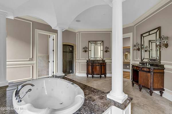 Massive Custom Colonial on Over 4 Acres Set on a 4+ acre lot, this is one of the largest custom homes in Toms River - offering over 7,900 sq ft plus a finished basement. The home is packed with space, character, and potential. While it could use some updating, it was built with quality and loaded with features you don't see every day. Double entry foyer, oversized dining room, grand living room, and a huge family room. The kitchen is enormous - with 3 sinks, 2 ovens, and tons of counter and cabinet space. Fireplaces and hardwood floors throughout. Upstairs, every bedroom connects to a bathroom, and there are two primary suites one on the main floor and one upstairs. The finished basement includes a theater room, wine cellar, bar, gym, den, and full bath. This home is ideal for someone who needs serious space and wants something truly unique. Property sold as-is, Purchaser responsible for CO