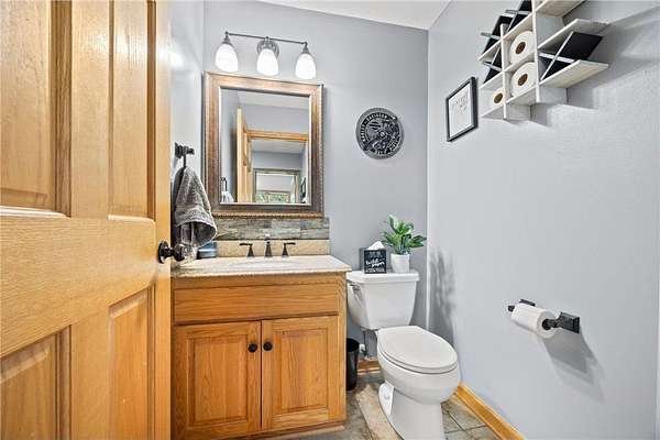Escape to peaceful country living! This spacious 4-bedroom, 4-bath two-story home sits on over 17 acres, including wetlands--perfect for privacy, and enjoying serene wildlife views. The kitchen features granite countertops, high-end stainless steel appliances, a center island, walk-in pantry, and solid oak doors. The main-level family room offers a cozy gas fireplace, and the office space is ideal for remote work or quiet study. The vaulted primary suite includes a walk-in closet and private full bath with jetted tub and double vanity. The finished walkout lower level includes a large recreation room, bedroom and 3/4 bath. Outside, enjoy a beautifully landscaped yard including a pond with waterfall, peaceful seating areas and expansive deck perfect for entertaining or relaxing. An oversized heated garage completes this one-of-a-kind property. Live the country lifestyle with modern comforts, space to roam, and nature at your doorstep!