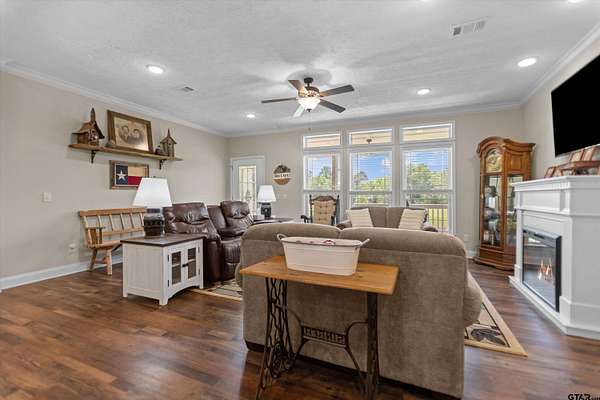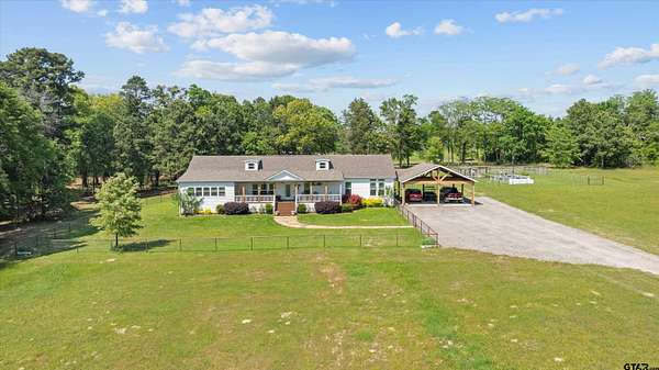 Step into the charm and space of East Texas living with this inviting country property set on generous acreage, offering the perfect balance of privacy and convenience. This well-maintained home features approximately four bedrooms and two and a half bathrooms, providing a flexible layout ideal for both everyday living and hosting guests. Inside, you’ll find a comfortable living area anchored by a cozy fireplace, complemented by durable flooring and plenty of natural light throughout. The kitchen is equipped with a propane cooktop paired with electric double ovens, offering the best of both worlds in a true dual-fuel setup that’s perfect for cooking enthusiasts. Each bedroom is thoughtfully sized, giving everyone their own retreat while still feeling connected to the heart of the home. A heat pump system provides efficient heating and cooling for year-round comfort. Outside, the property truly shines with wide-open spaces and scenic surroundings that capture the essence of rural East Texas. Whether you’re envisioning a garden, small livestock, or simply room to roam, this acreage provides endless possibilities. A covered porch invites you to relax and take in peaceful views, while additional outdoor features—including a shop that contributes to the property’s second water heater—offer functionality for hobbies, st Outside, the property truly shines with wide-open spaces and scenic surroundings that capture the essence of rural East Texas. Whether you’re envisioning a garden, small livestock, or simply room to roam, this acreage provides endless possibilities. A covered porch invites you to relax and take in peaceful views, while additional outdoor features offer functionality for hobbies, storage, or workspace needs. The setting provides a sense of seclusion without sacrificing accessibility to nearby towns and amenities. Whether you're looking for a full-time residence or a quiet escape, this property delivers both comfort and opportunity in one beautiful package.