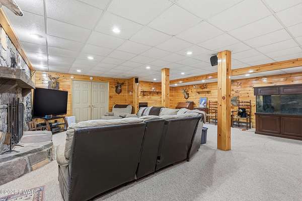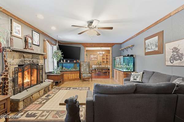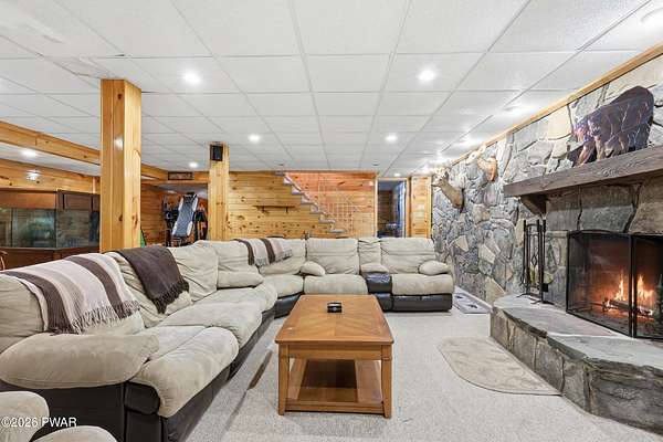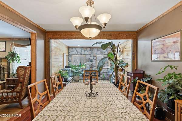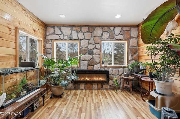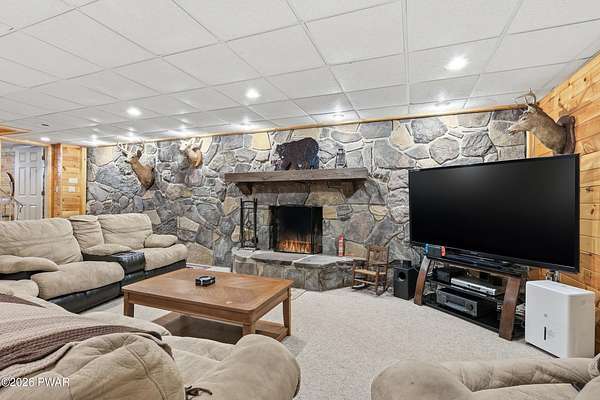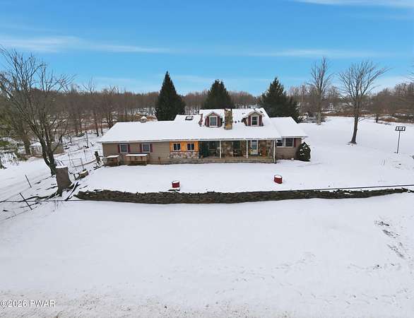 COUNTRY HOME OFFERING 3,300 SQ. FT. OF LIVING AREA ON 2 ACRES. Featuring 5 bedrooms, 3 bathrooms over 3 levels, offering multi family member use. Primary on suite on Main Level. Large open Kitchen area with woodstove, cozy breakfast area. Living room with stone fireplace, formal dining room, plant room with electric fireplace. Mud room, laundry & bath off attached oversized 2 car garage - workshop. 2nd level offers full bath, 3 bedrooms & bonus room.Finished lower level has large family den, Stone Fireplace, 5th bedroom, office & 2nd laundry area with pantry.Outside offers 2 acres of useable yard, 5 outbuildings for storage and animals. Chickens will stay if you want! Deck overlooking private back yard, which has pool, garden areas, greenhouse, koi pond, many perennial flowers and shrubs, room for family activities. Convenient to Honesdale, Elk Mt, trails & Prompton State Park with 300-acre Lake.