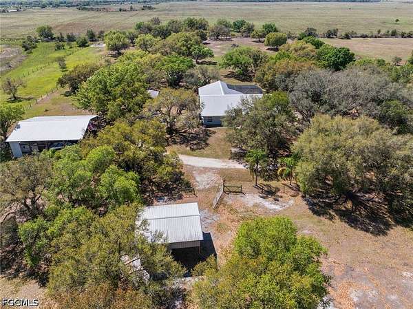 10 beautiful acres filled with mature oak trees just minutes from Labelle! This large single-family home has 3 bedrooms, 2.5 bathrooms, office/den, open kitchen, 2 HVAC's and 2570 sq feet of living! The fiberglass pool is easy maintenance and is perfect for relaxing on hot summer days. This property features two pole barns (43X51) & (27X23), a stocked pond, and is completely fenced and cross fenced. The metal roof ensures durability and longevity, while the covered lanai and newer screen enclosure allow you to enjoy the outdoors year-round. The septic drainfield has been recently replaced, providing peace of mind for years to come. Whether you're looking for a place to entertain guests or simply unwind in nature, this home has it all. Don't miss the opportunity to make this your forever home in Labelle. Schedule a showing today and experience the luxury and tranquility that this property has to offer. Adjacent 5 acres is also available. Click on the virtual tour-